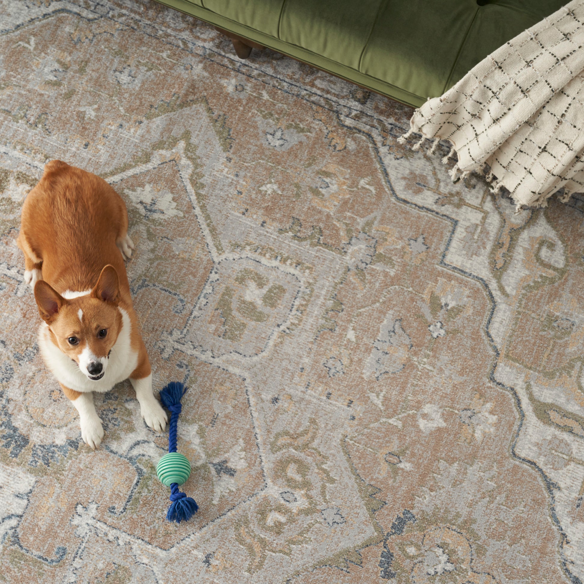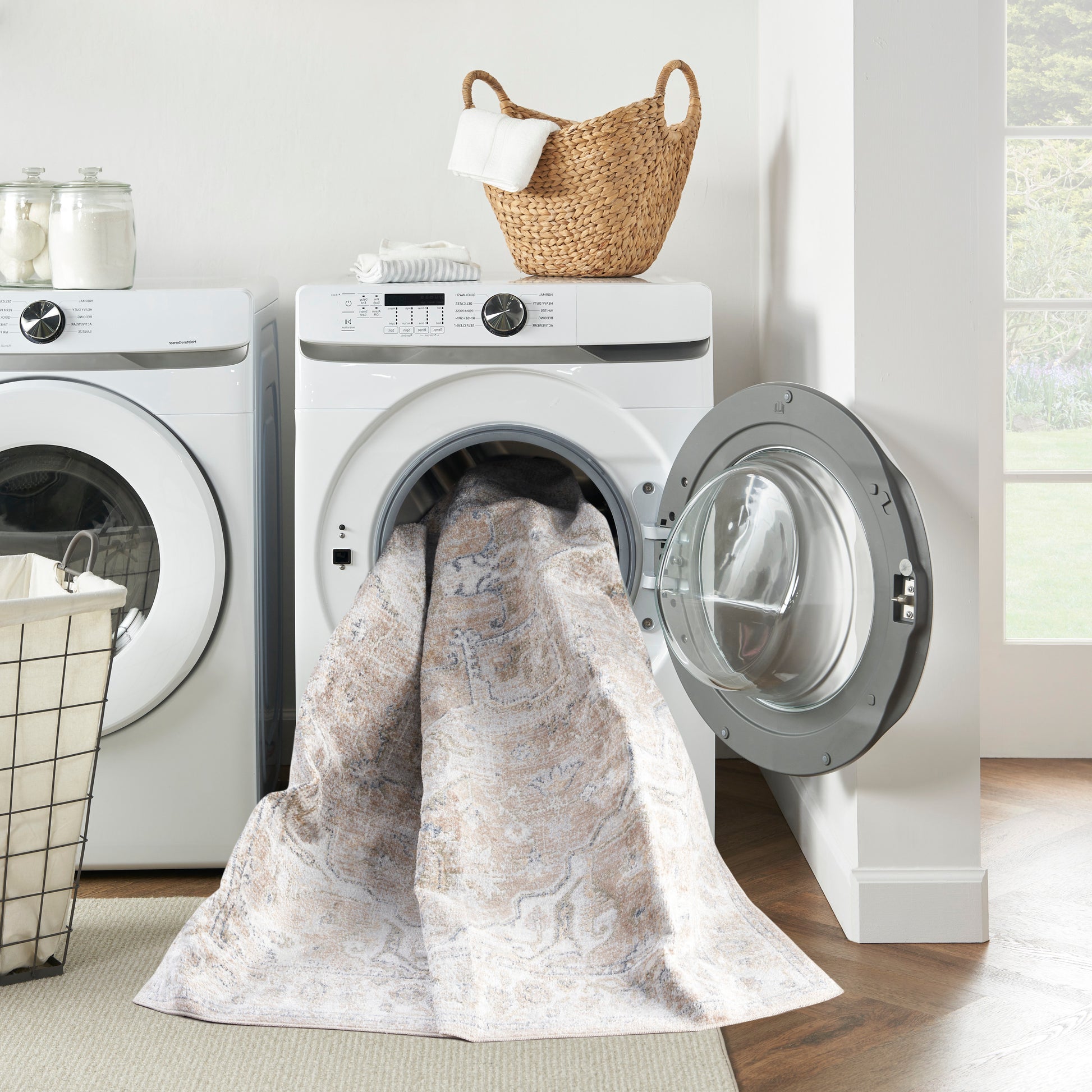 Invite a touch of old-world charm into your favorite space with this Persian rug from the Astra Machine Washable Collection. The heirloom-inspired design features an ornate beige floral medallion pattern and matching border that beautifully defines farmhouse, boho, and vintage décor. This rug is designed for modern living with a low-profile, machine-washable pile and shimmering yarns that beautifully reflect shifting light.