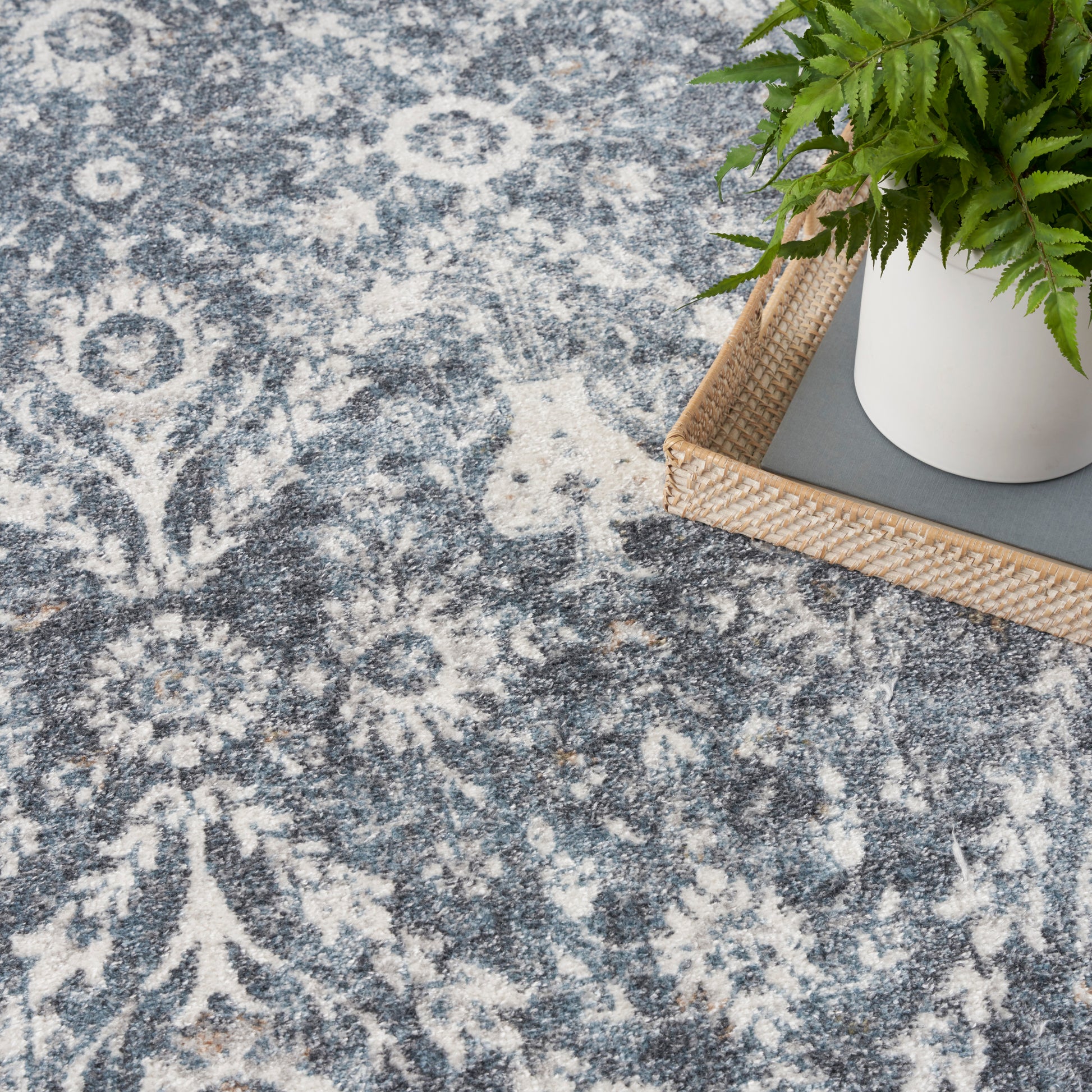 Nourison Astra Machine Washable 6'7" x 9' Dark Blue Vintage Indoor Rug