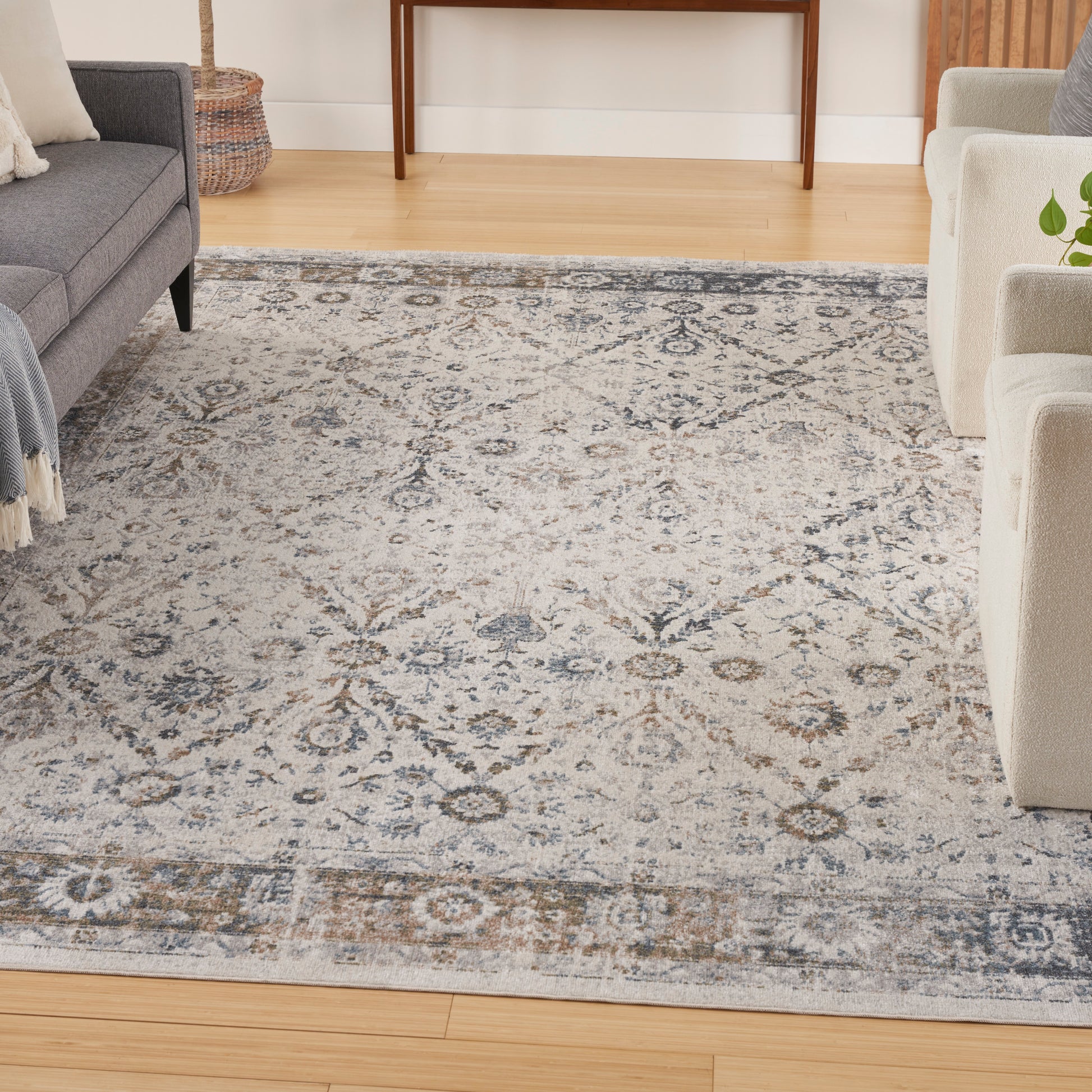 Nourison Astra Machine Washable 6'7" x 9' Ivory Blue Vintage Indoor Rug