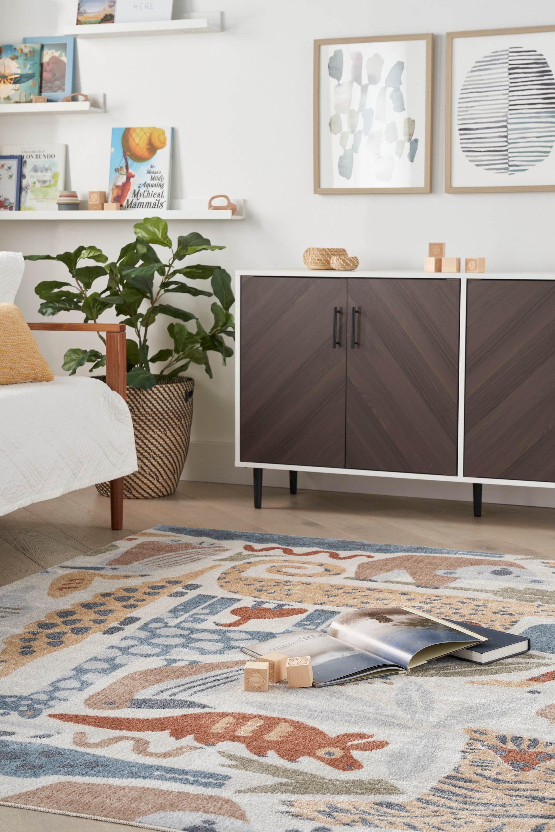 Take your little ones on a journey with this safari washable rug from the Astra Machine Washable Collection. The contemporary design features a whimsical group of animals, including birds, big cats, and koalas in soft colors that easily complement a variety of spaces. With a softly textured surface enhanced by an eye-catching sheen, this kids rug is ideal for the playroom, bedroom, or nursery.