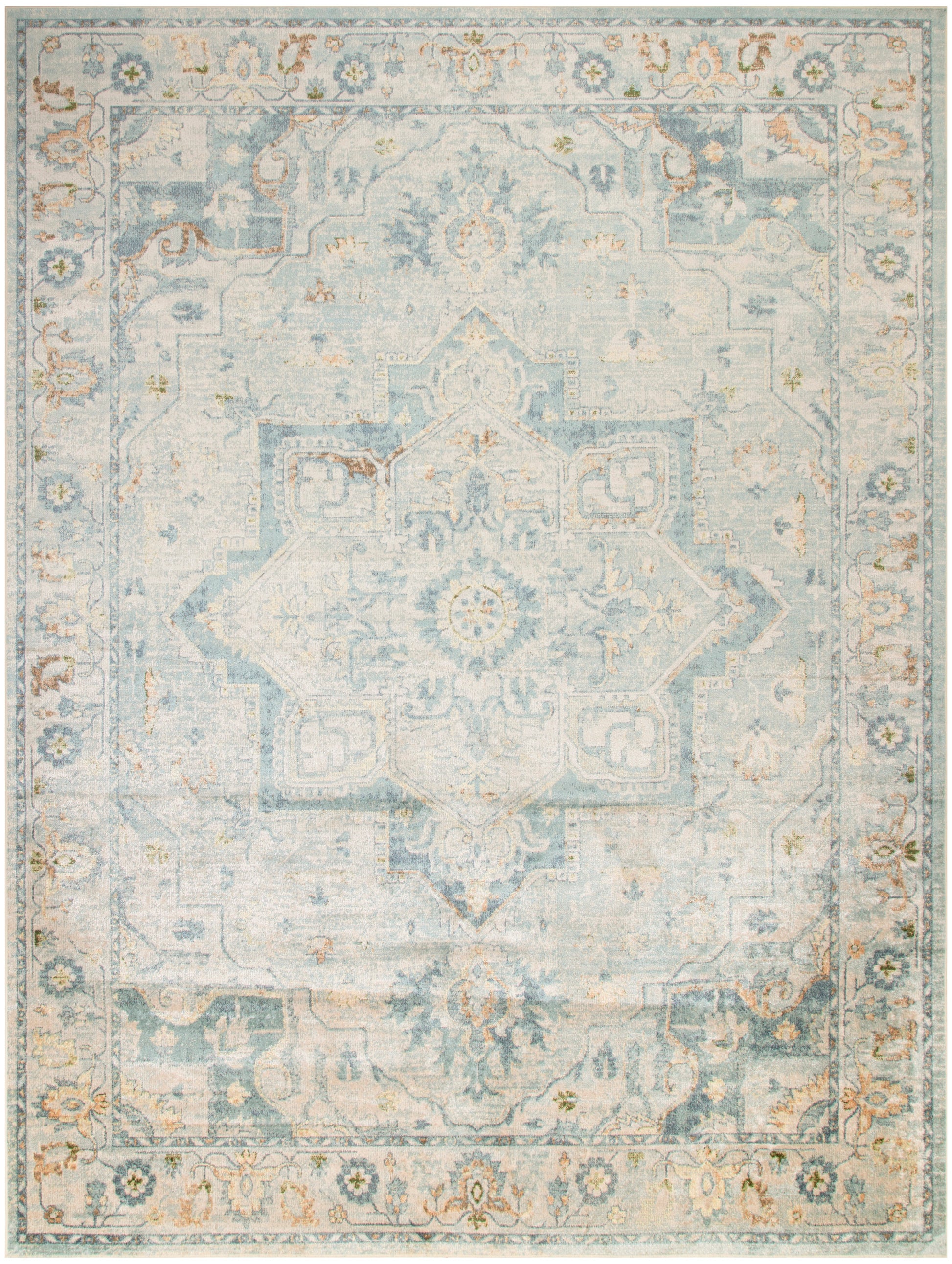 Invite a touch of old-world charm into your favorite space with this light blue Persian rug from the Astra Machine Washable Collection. The heirloom-inspired design features an ornate beige floral medallion pattern and matching border that beautifully defines farmhouse, boho, and vintage décor. This rug is designed for modern living with a low-profile, machine-washable pile and shimmering yarns that beautifully reflect shifting light.