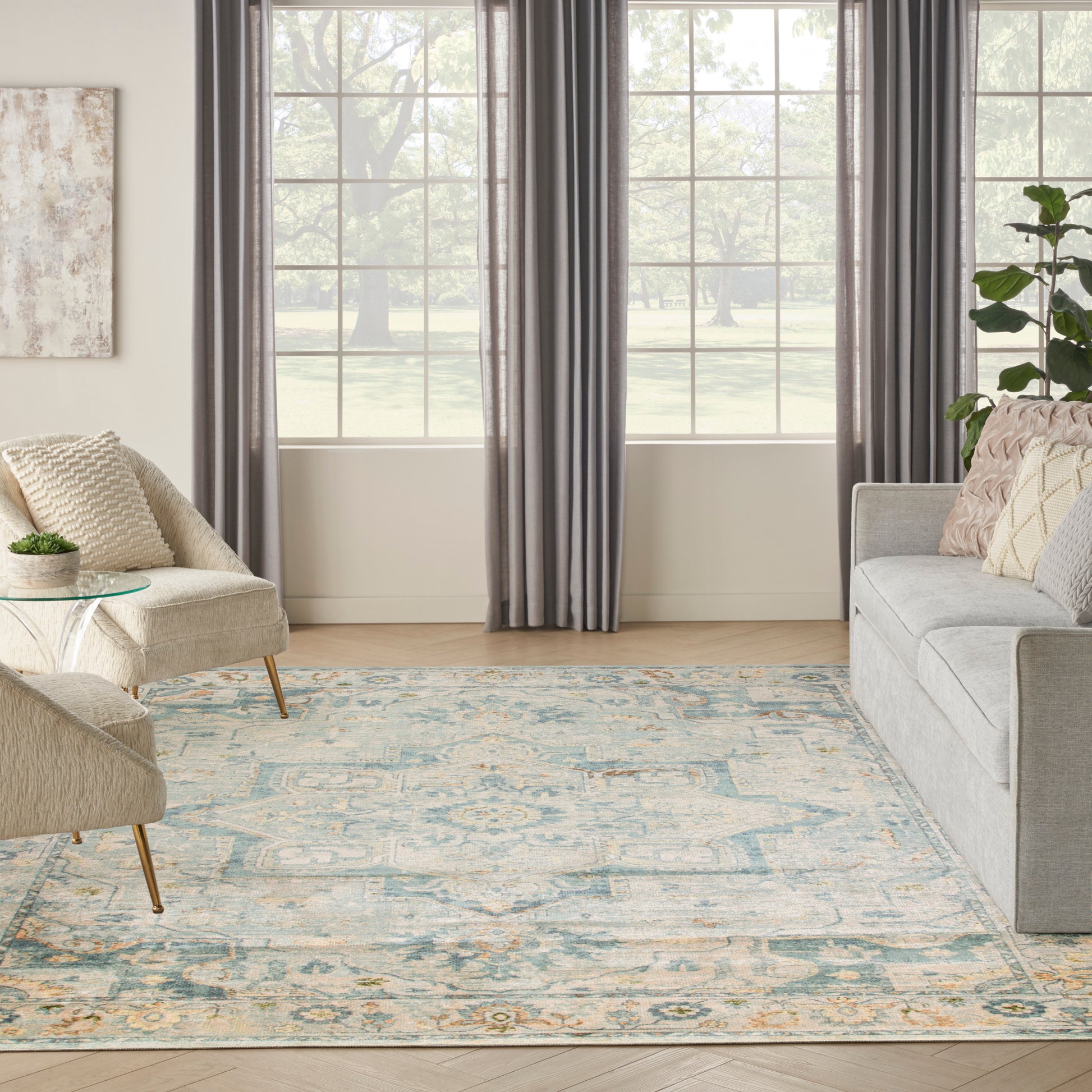 Nourison Astra Machine Washable 6'7" x 9' Light Blue Vintage Indoor Rug