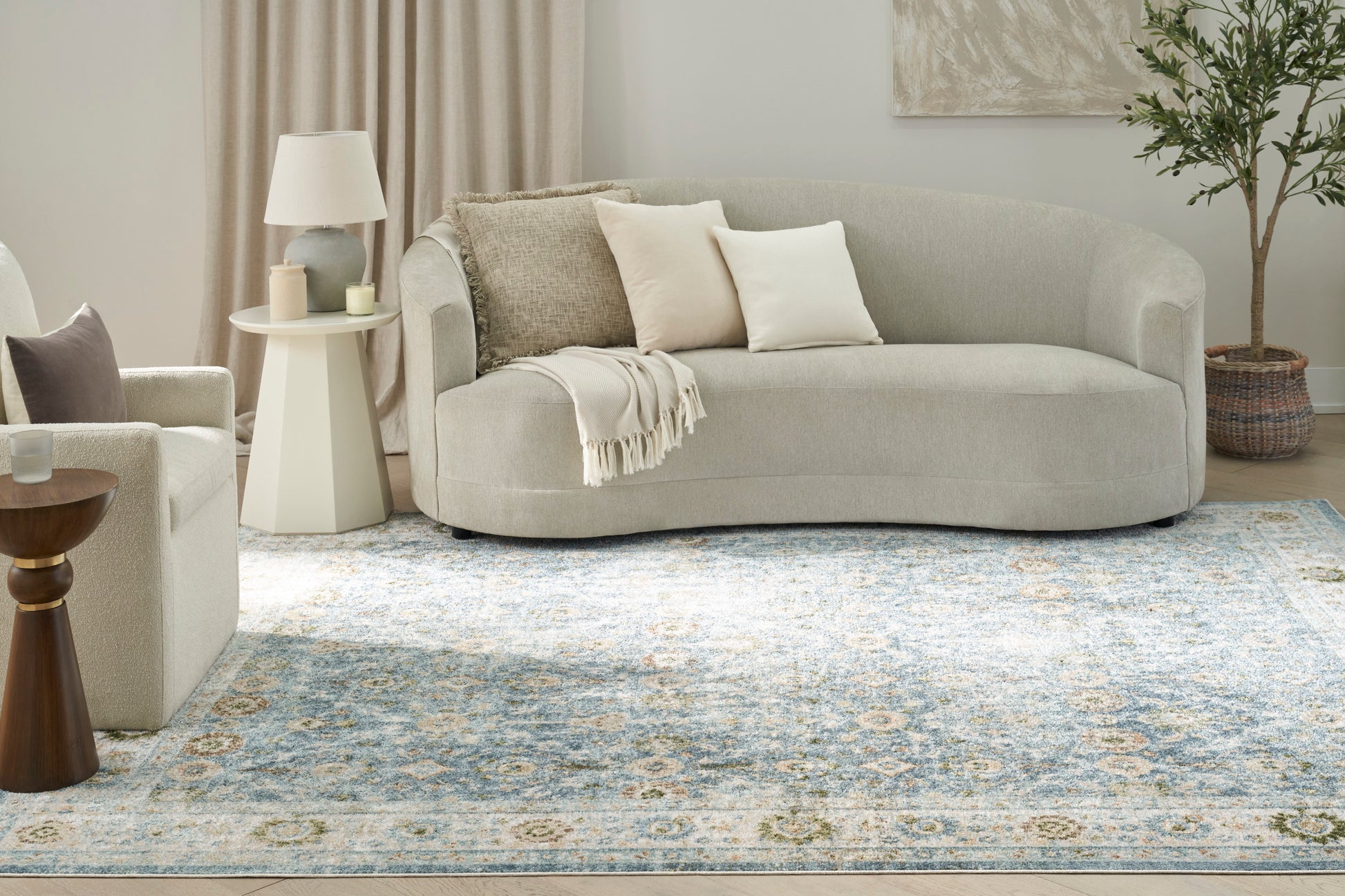 Rug Pad Benefits: Adding a layer of padding helps cushion the rug and lesson pressure, helping to prolong the rug’s life. In addition, the extra padding helps deaden sound in the room.