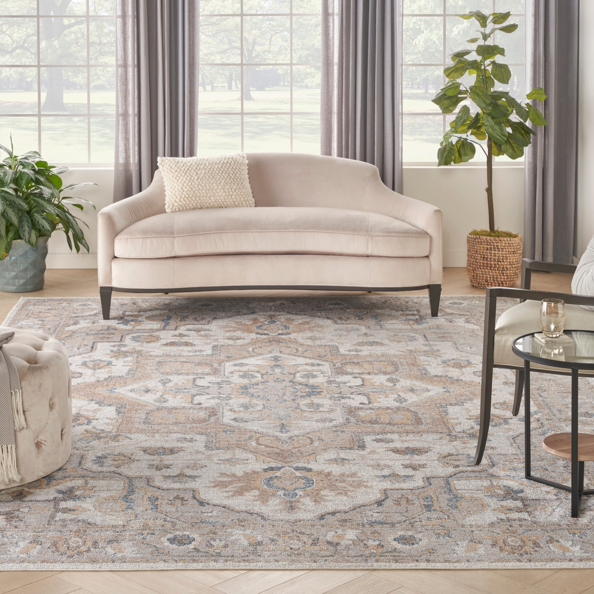 Invite a touch of old-world charm into your favorite space with this Persian rug from the Astra Machine Washable Collection. The heirloom-inspired design features an ornate silver grey and beige floral medallion pattern and matching border that beautifully defines farmhouse, boho, and vintage décor. This rug is designed for modern living with a low-profile, machine-washable pile and shimmering yarns that beautifully reflect shifting light.