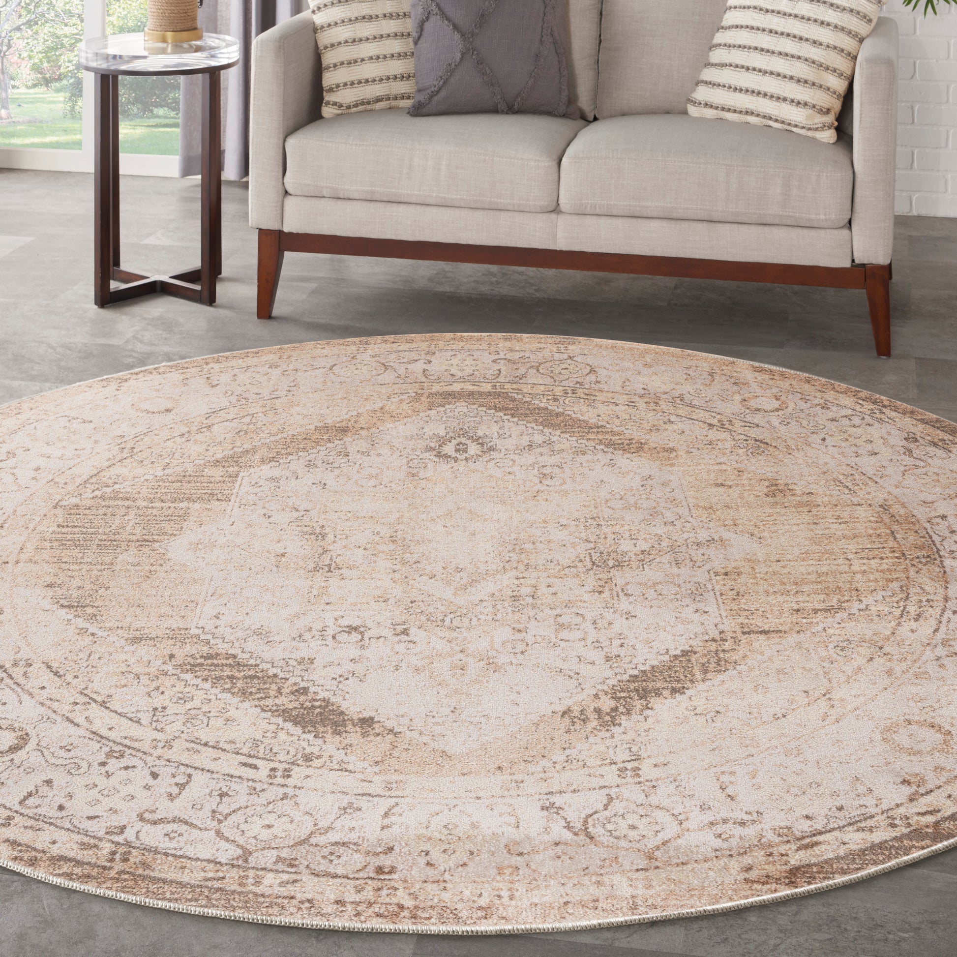 Nourison Astra Machine Washable 7'10" x Round Beige Vintage Indoor Rug