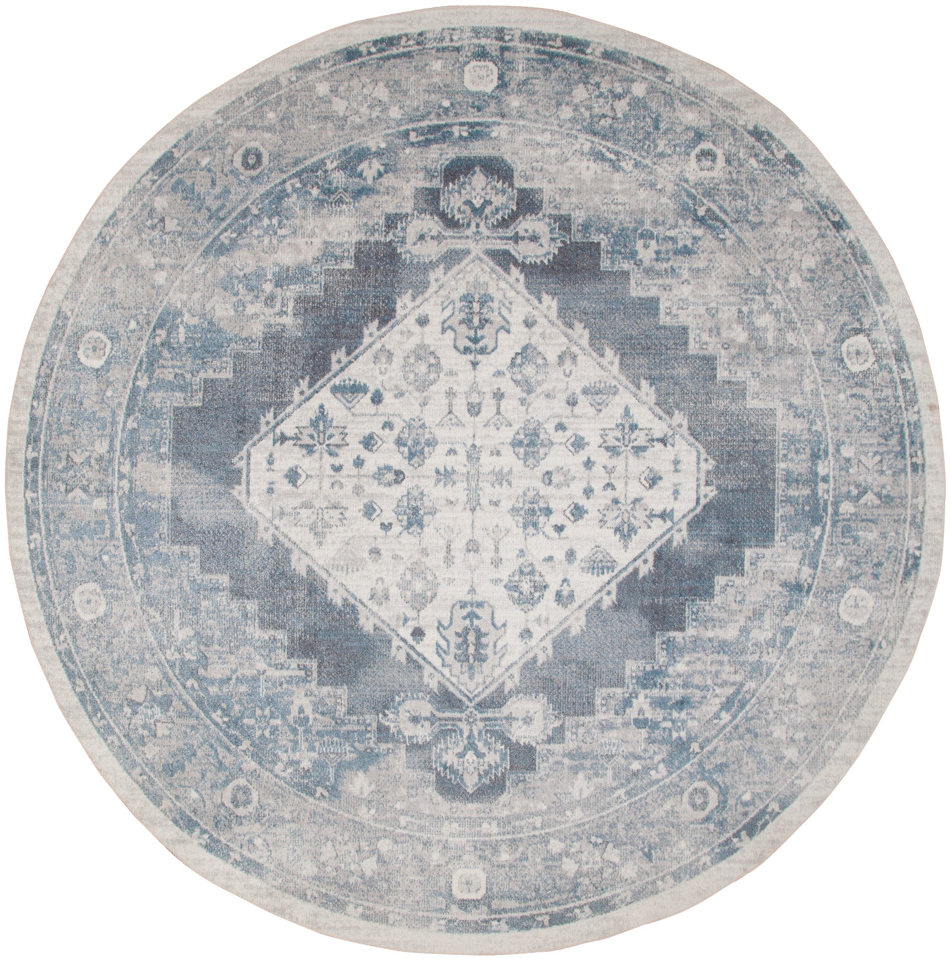 Nourison Astra Machine Washable 7'10" x Round Blue Ivory Vintage Indoor Rug