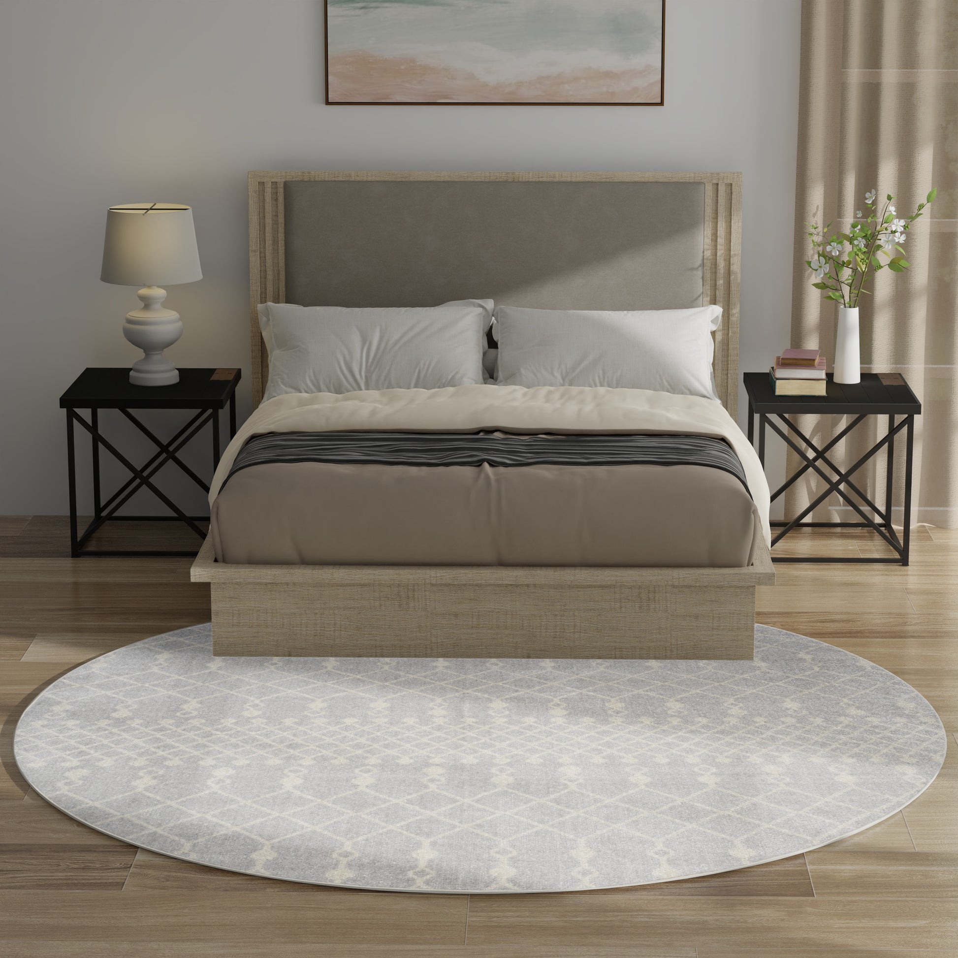 Bring global style home with this boho chic rug from the Astra Machine Washable Collection. Presented in grey and ivory, the classic Moroccan trellis pattern is finished with a vibrant sheen that shifts in tone under different light. This machine-washable rug beautifully complements modern and farmhouse décor.