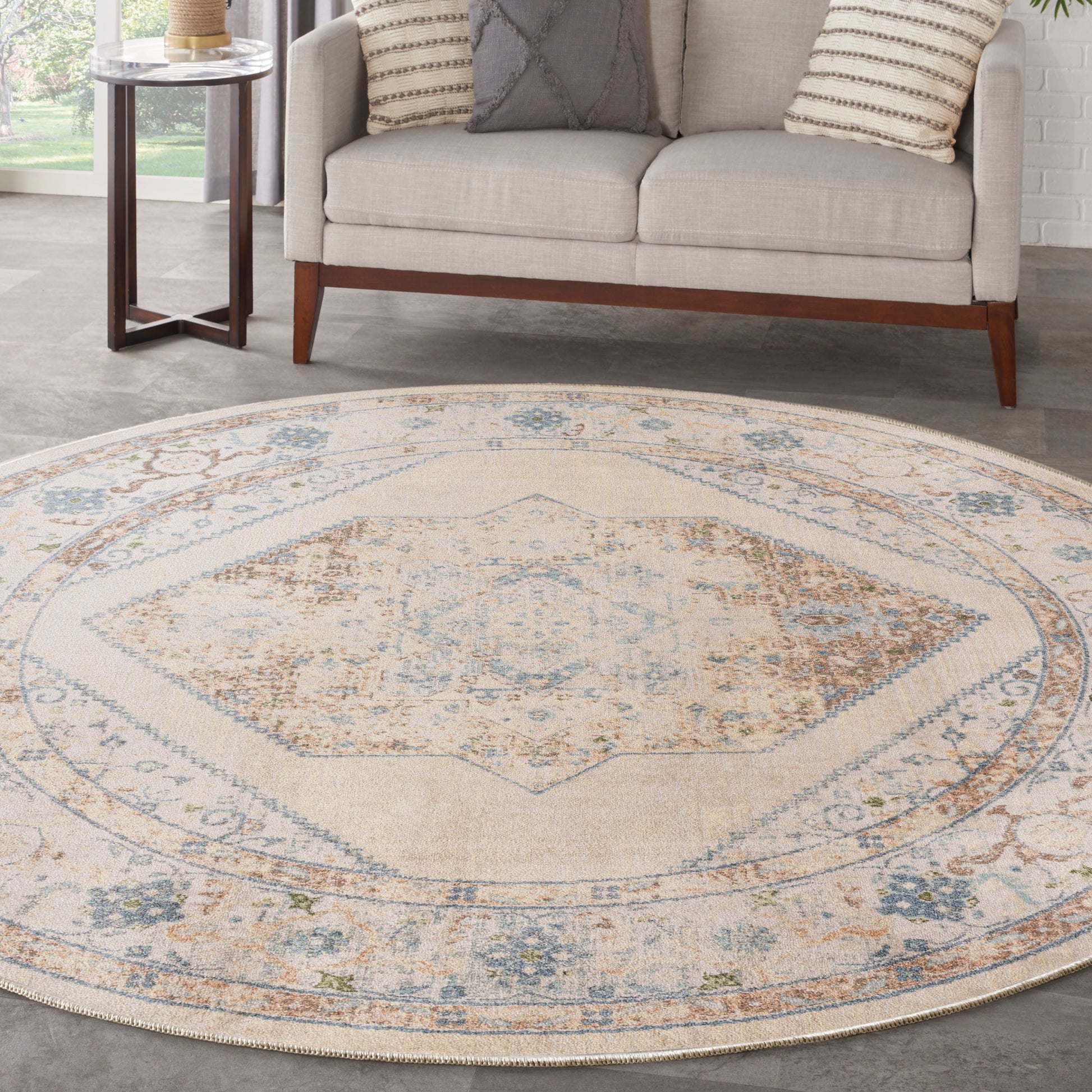 Nourison Astra Machine Washable 7'10" x Round Ivory Blue Vintage Indoor Rug
