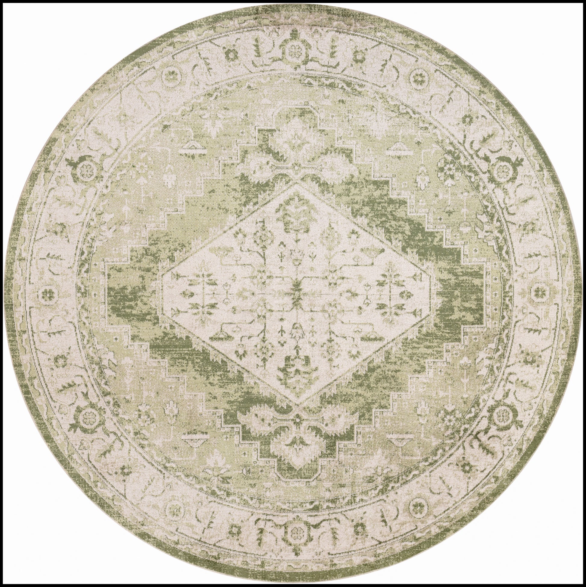 Nourison Astra Machine Washable 7'10" x Round Ivory Green Vintage Indoor Rug