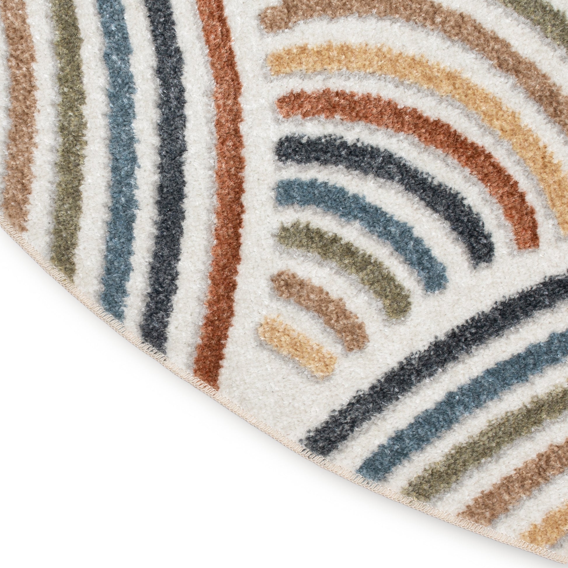 Nourison Astra Machine Washable 7'10" x Round Ivory Multicolor Mid-Century Modern Indoor Rug