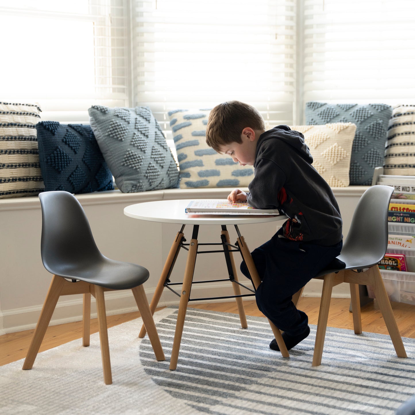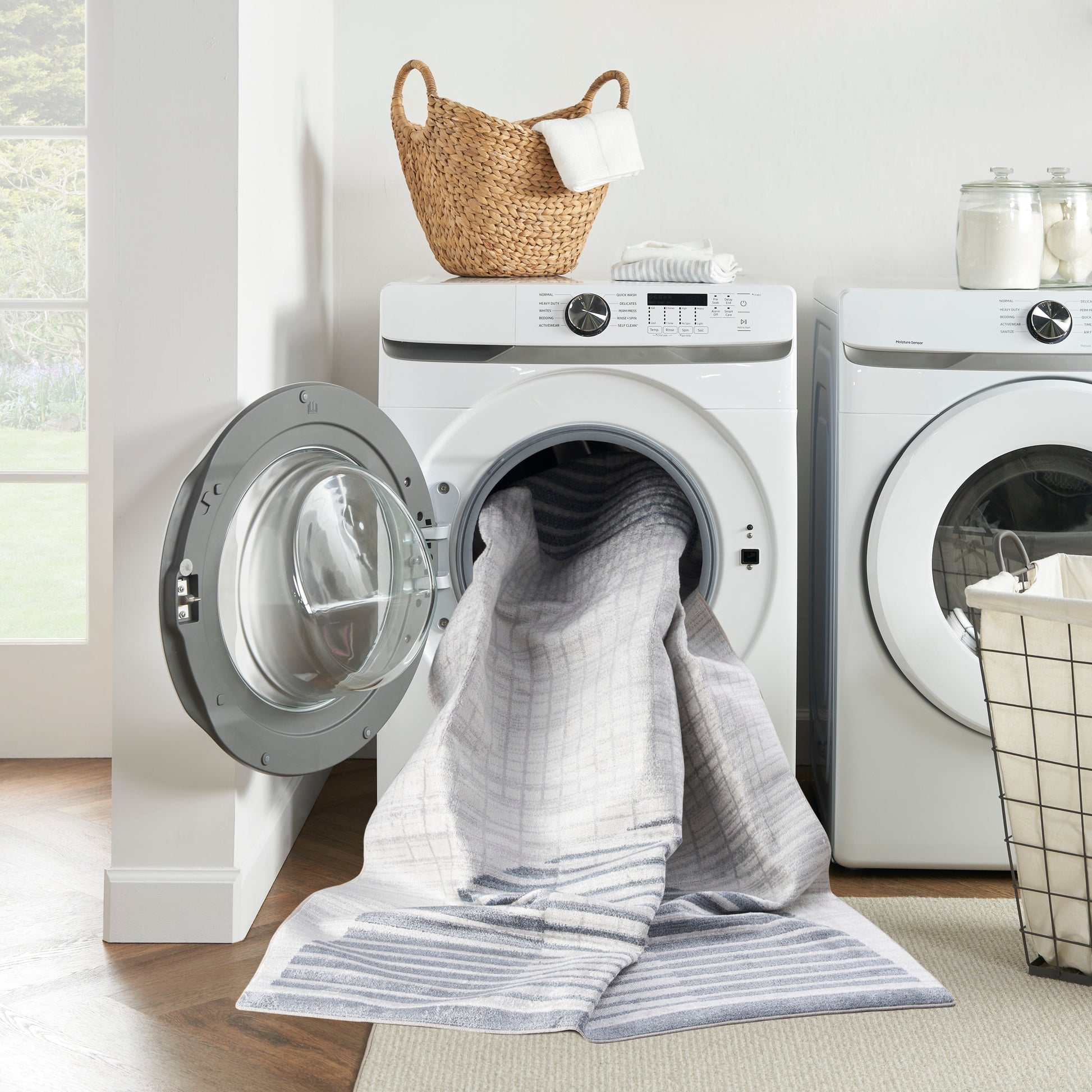 Bring balance to your living room, bedroom, or dining room with this mid-century modern rug from the Astra Machine Washable Collection. Two semi-circles are overlapped by a lined circle silhouette in grey and blue, with a shimmery finish that shifts in different lighting. This contemporary rug has a low-pile for easy placement under furniture and near doorways and is machine-washable for fuss-free cleaning.