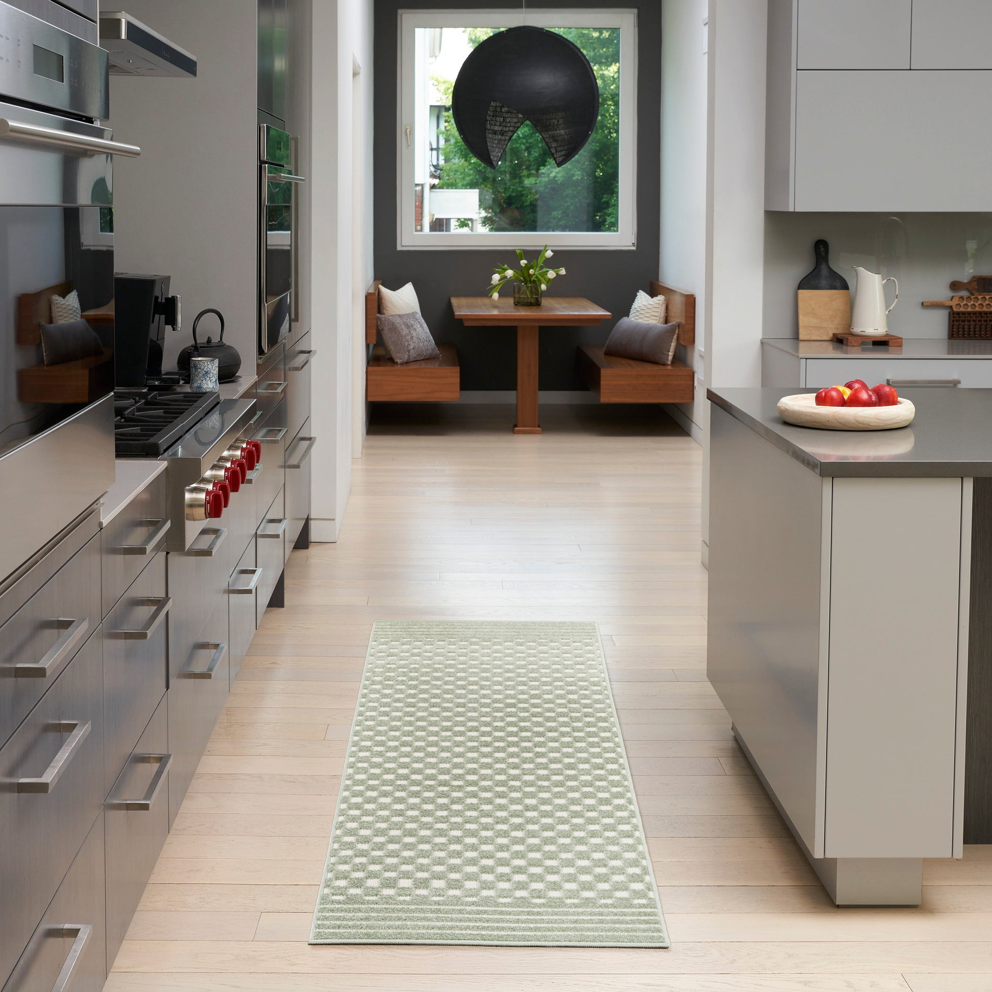Playful with a touch of chic, this green checkerboard rug from the Care Free Collection adds an instant boost of coziness to virtually any space. The timeless pattern adds a fun pop of dimension thanks to a high-low raised texture that feels incredibly soft to the touch. Made for modern living from hard-wearing polypropylene that’s easy to clean: simply spot clean spills with a clean white cloth to keep your rug looking fresh.