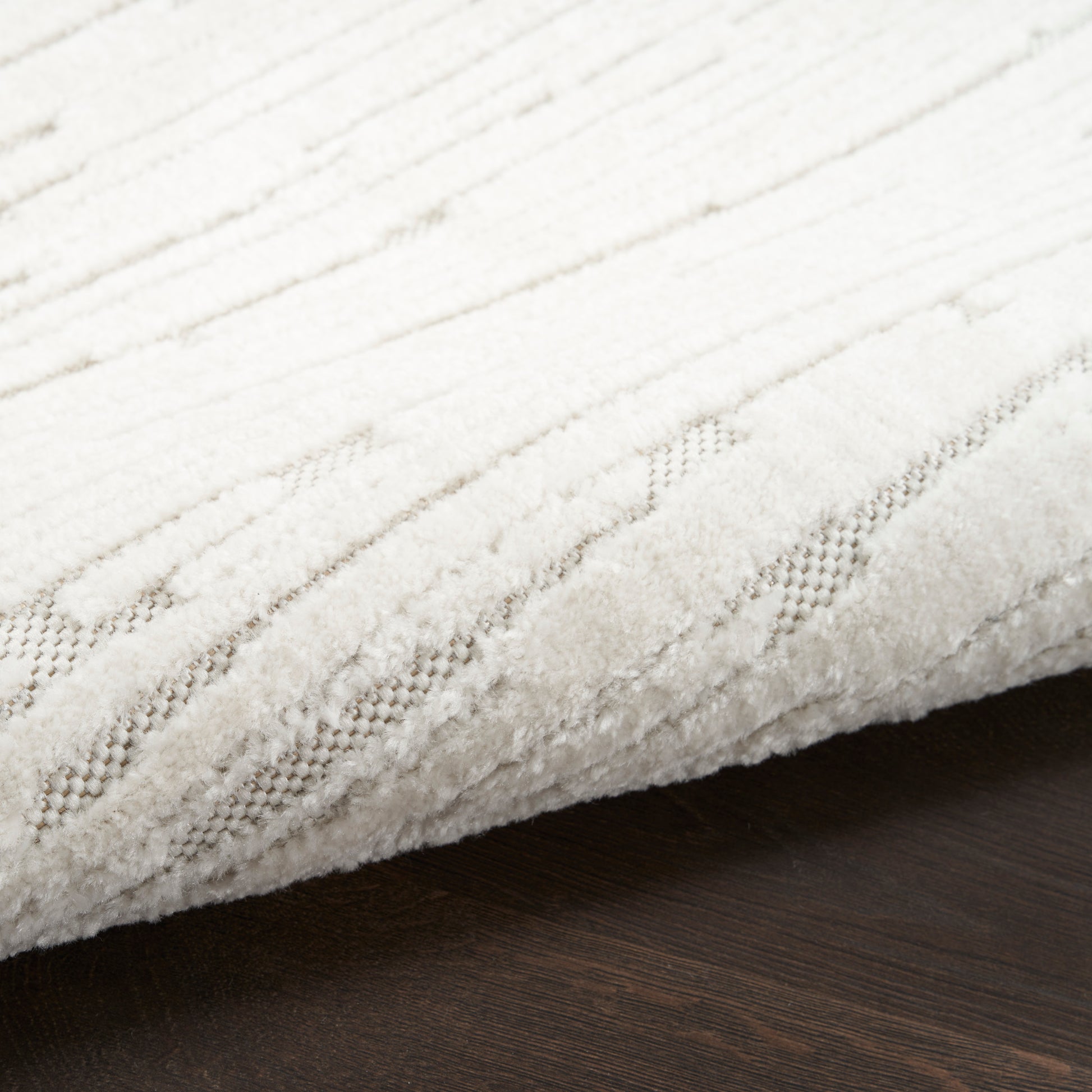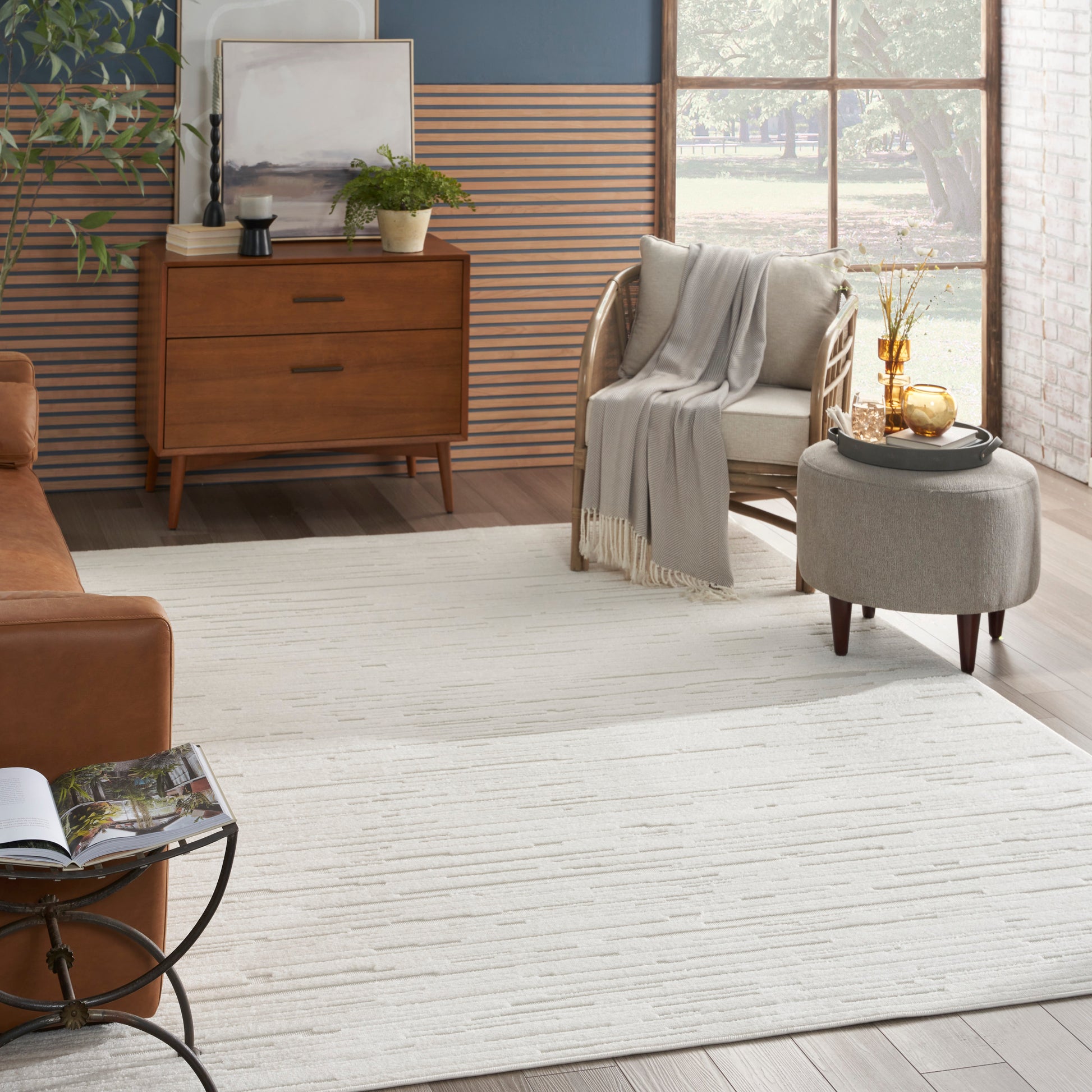 Invite relaxed style to your favorite spaces with this ivory textured rug from the Care Free Collection. The simple, solid background is marked by abstract lines in a high-low, cutout style design that adds an intriguing sense of depth. Made from easy-clean polypropylene fibers that feel incredibly soft to the touch, which is ideal for busy families with young kids and pets.