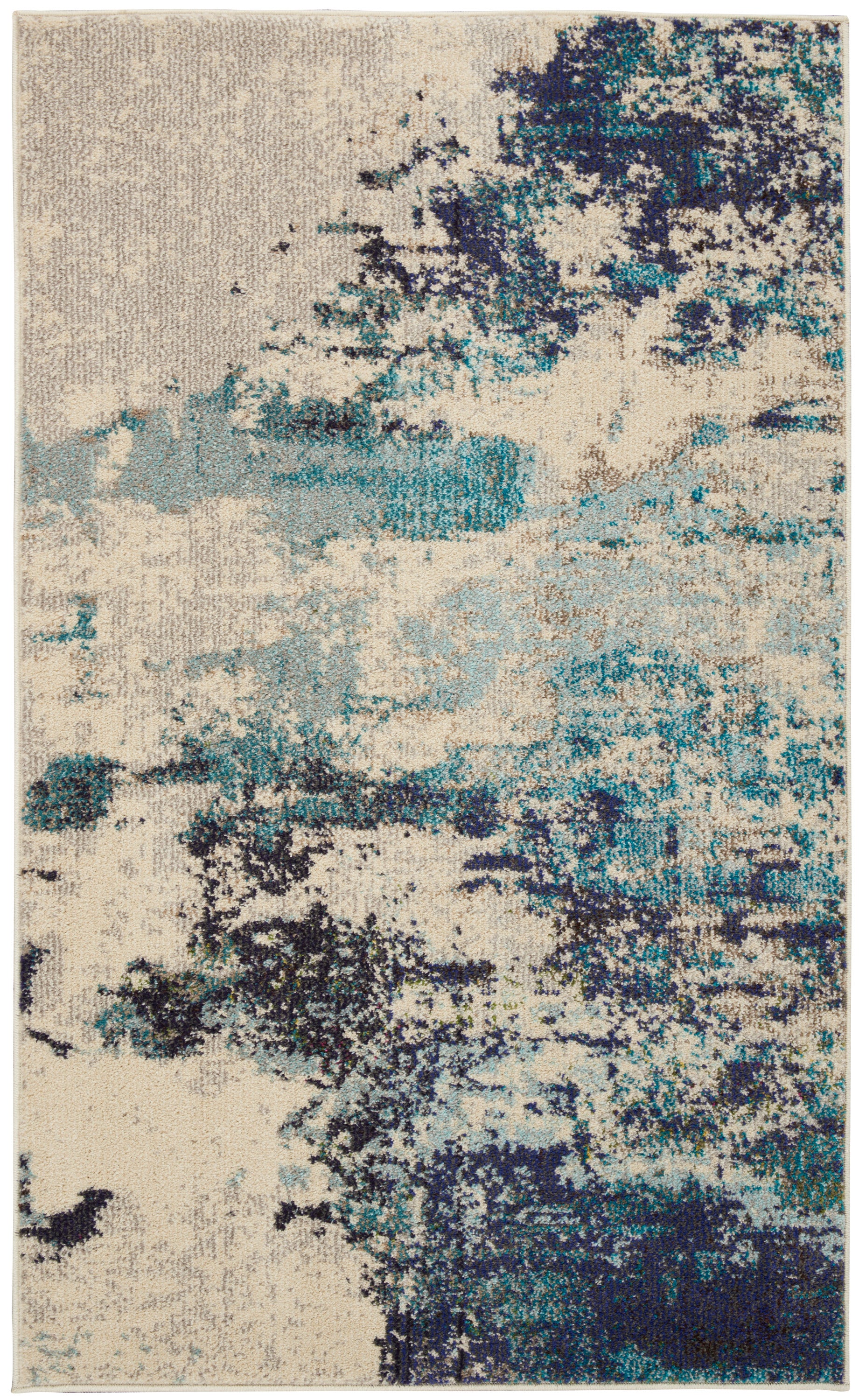 Nourison Celestial 3' x 5' Ivory/Teal Blue Modern Indoor Rug