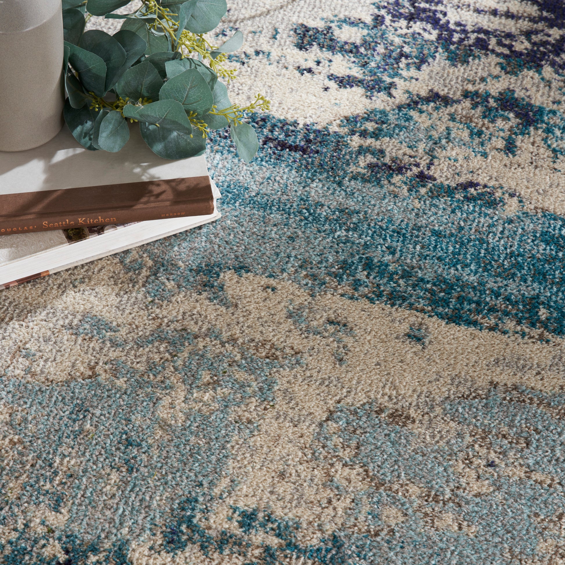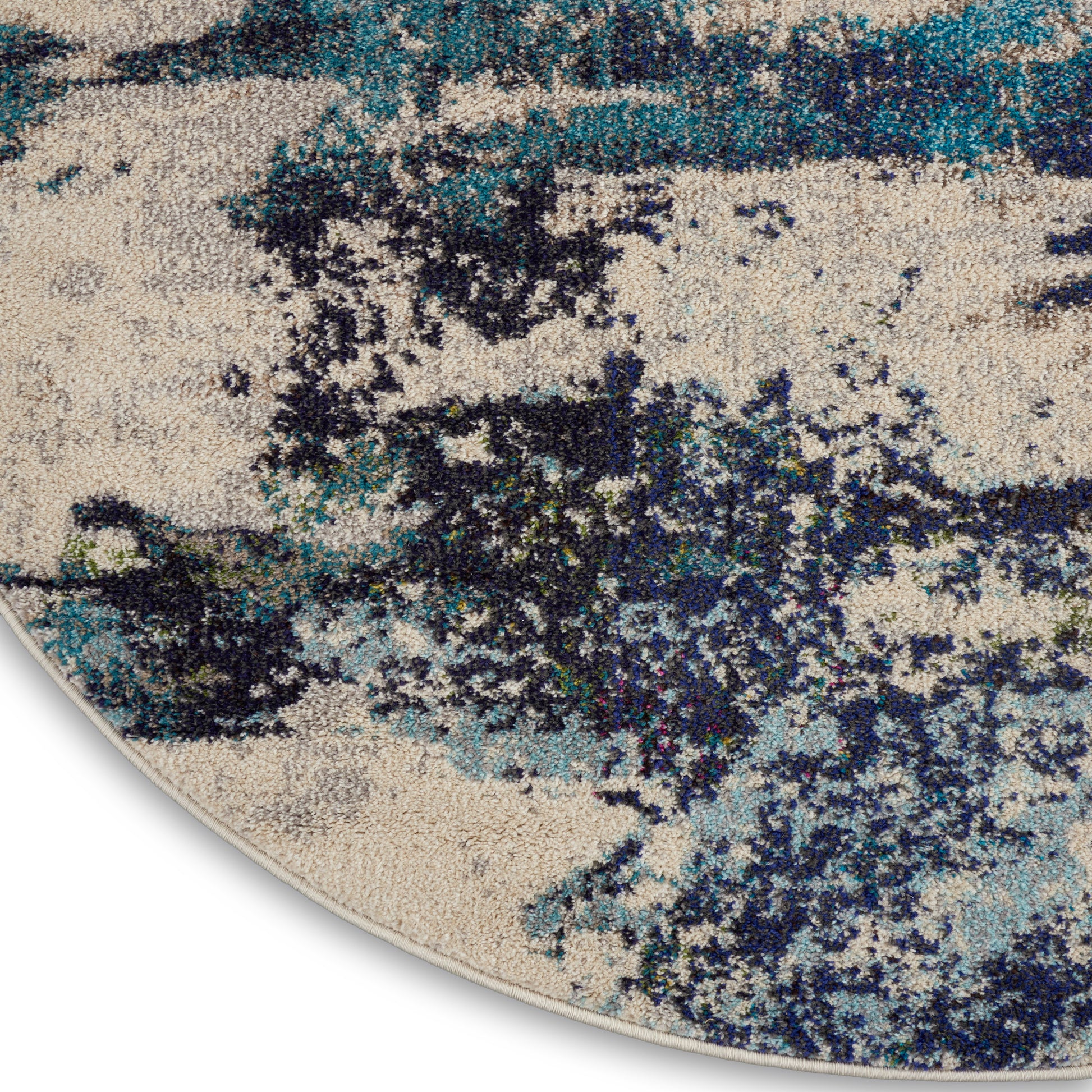 Nourison Celestial 5'3" x Round Ivory/Teal Blue Modern Indoor Rug