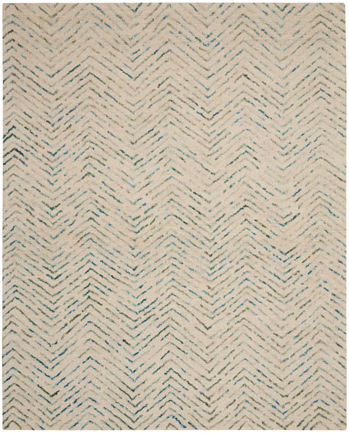 Rows of chevrons move like arrowheads across the textural surface of this free-spirited Colorado Collection area rug. Its artisanal, hand-tufted loop pile is irresistible to the touch. Enjoy the softness and durability of its easy-care, low-shed wool fibers in a fresh, natural palette of ivory and green.