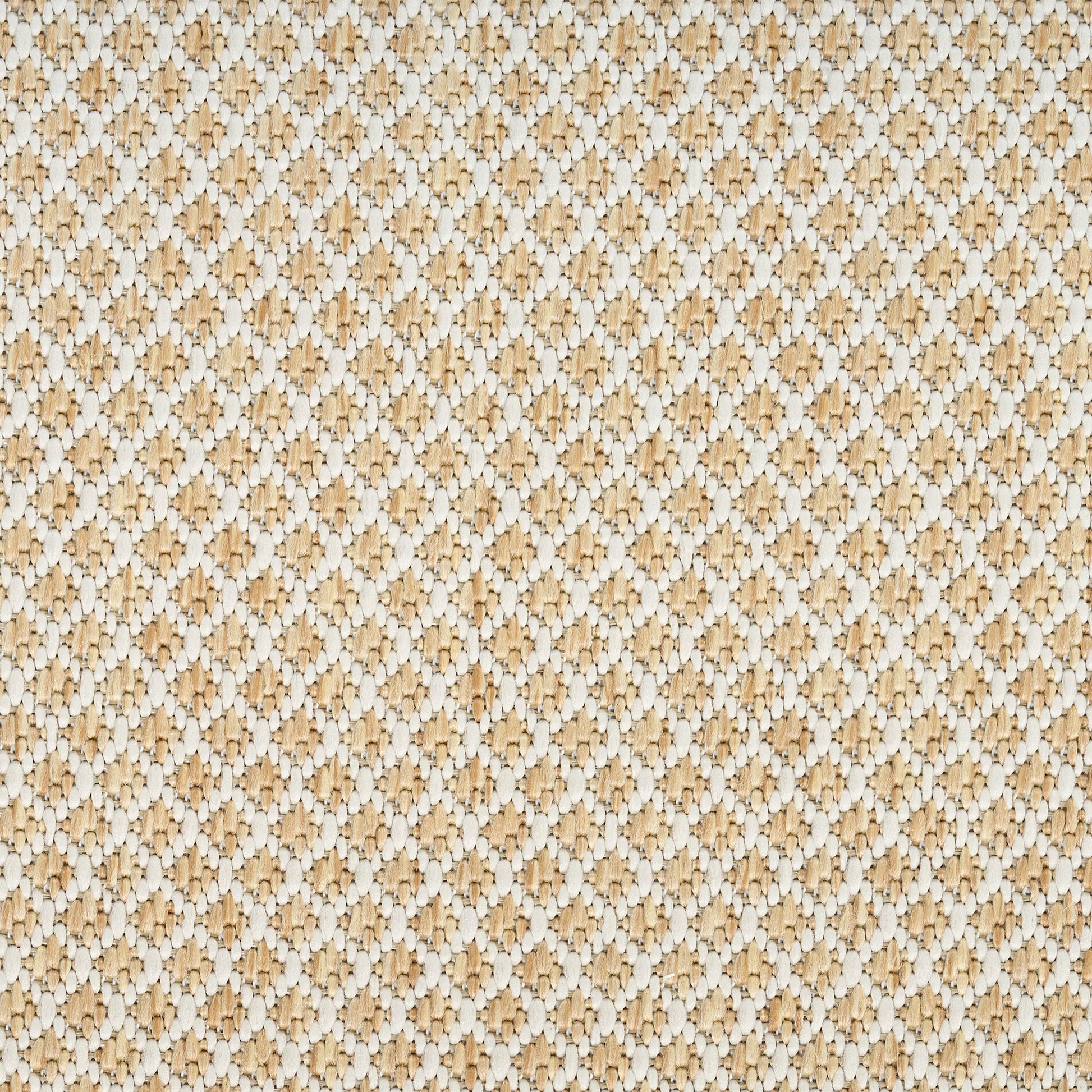 With its striking geometric pattern, this Courtyard Collection outdoor rug exudes contemporary style. Its subtly textured surface is crafted in natural beige for a seamless complement to modern settings. Machine made from a blend of polypropylene and polyester in a flatweave style that stands up to heavy traffic and is easily washable outdoors: just hose-rinse and air dry.