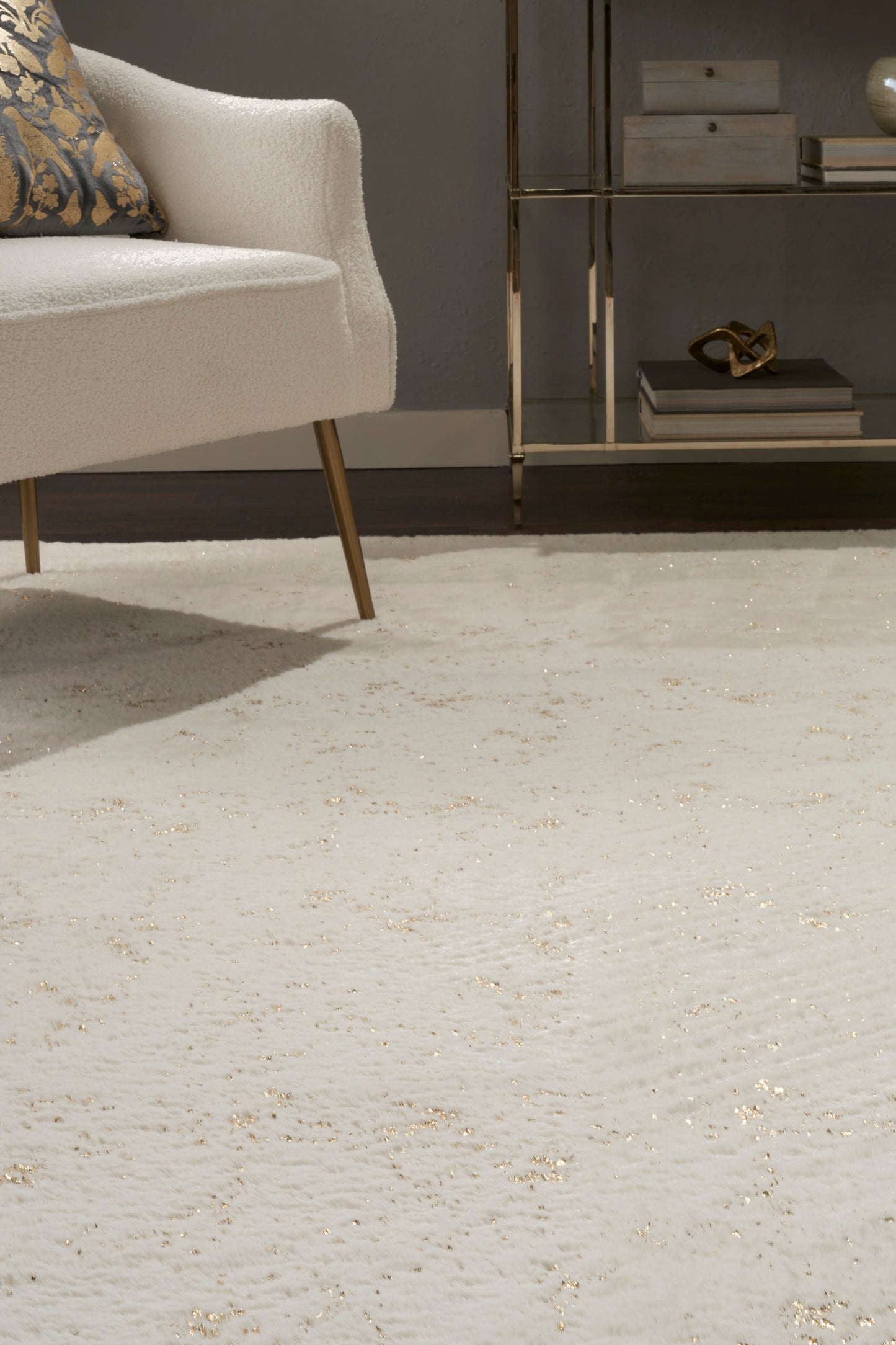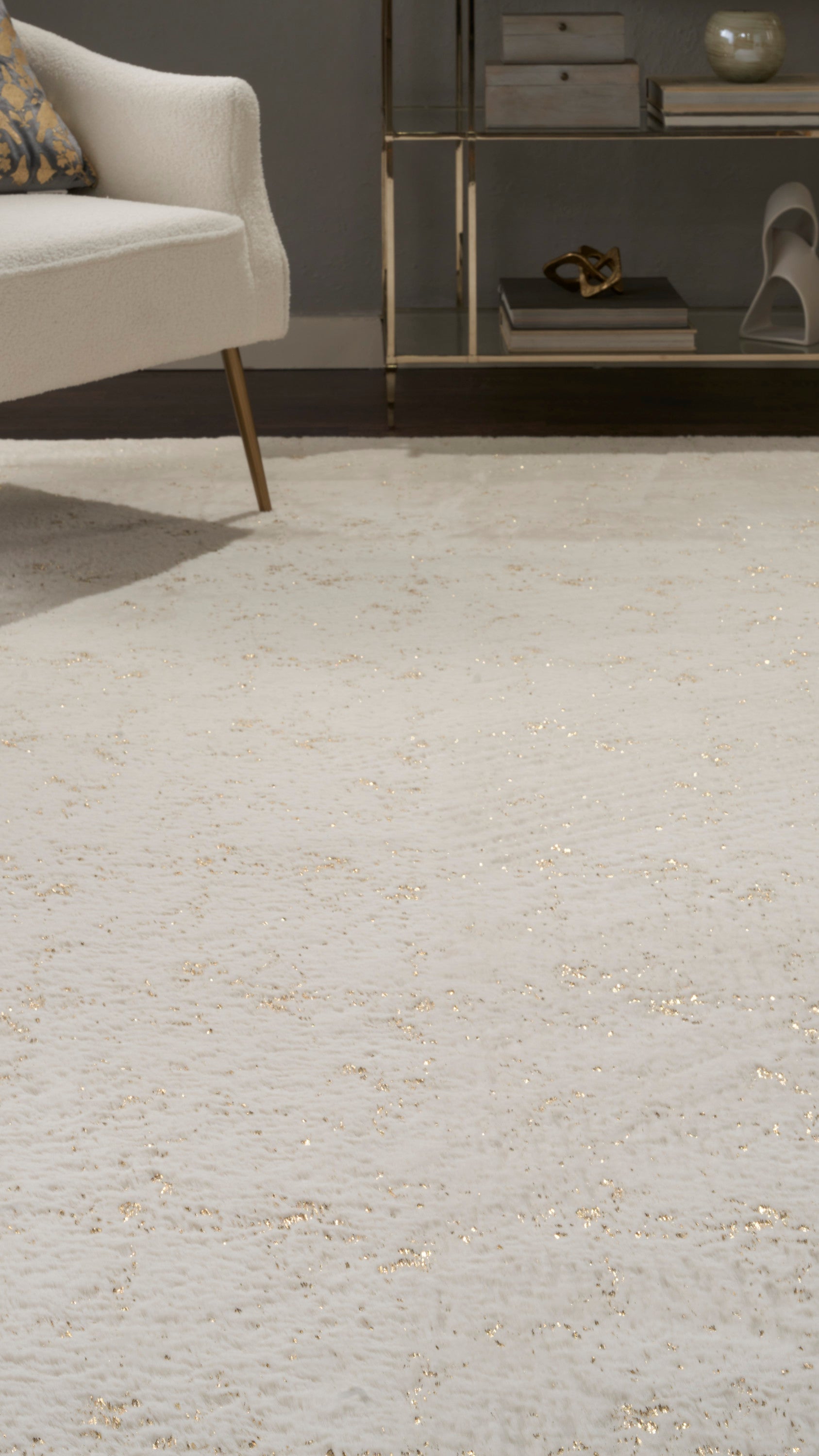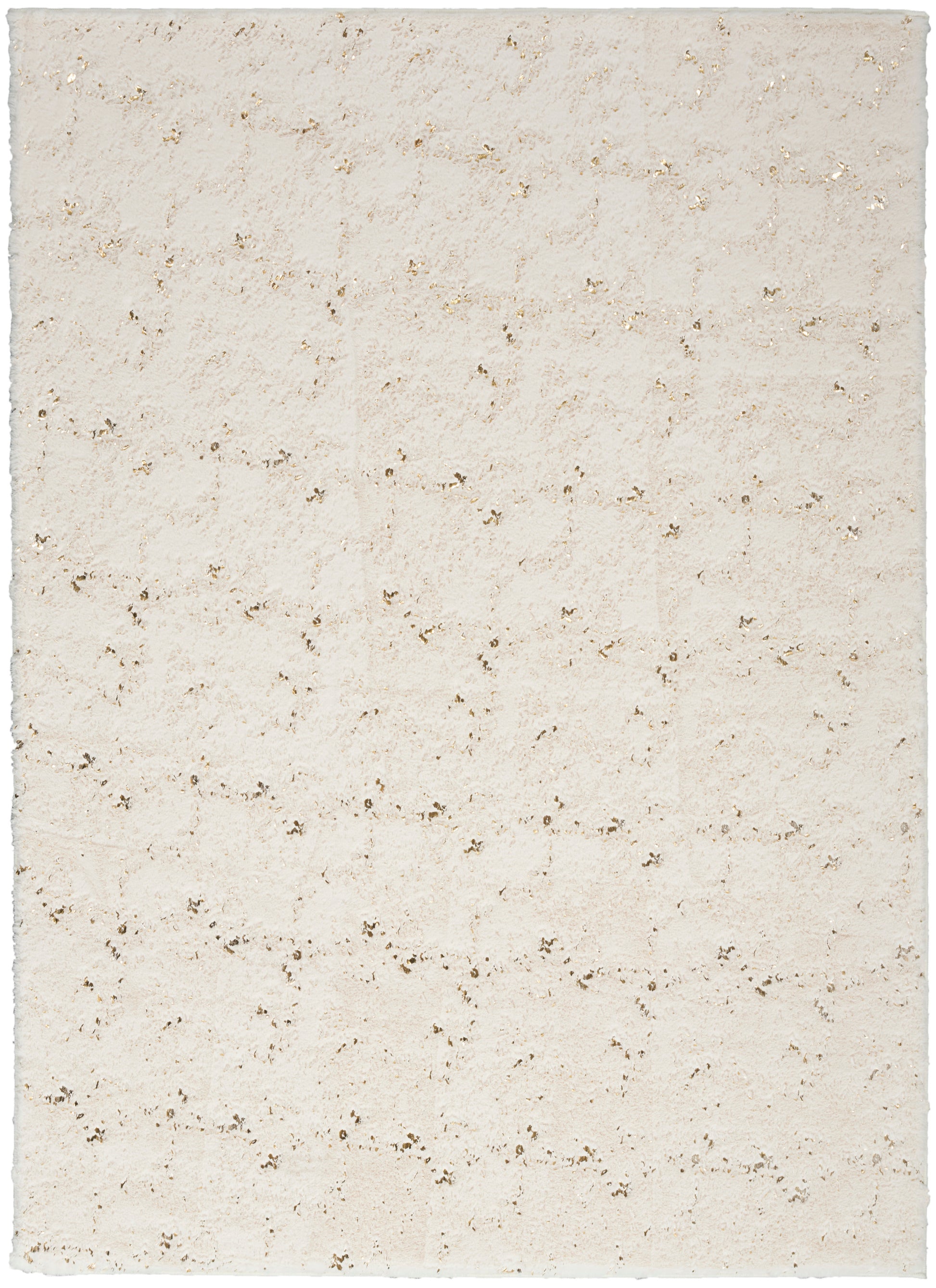 Like the warmth and comfort of your favorite fleece blanket, this ivory shag rug from the Cozy Shimmer Collection generously delivers engaging texture and nuanced glamor. Hand-tufted from polyester yarns, this plush rug is accented with metallic gold highlights that offer a modern touch. A non-slip back adds safety and practicality, keeping the rug in place while protecting your floors.