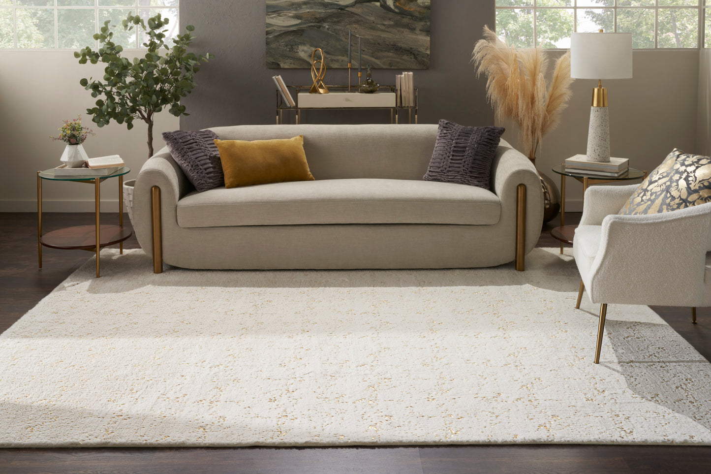 Nourison Cozy Shimmer 7'9" x 9'9" Ivory Gold Glam Indoor Rug