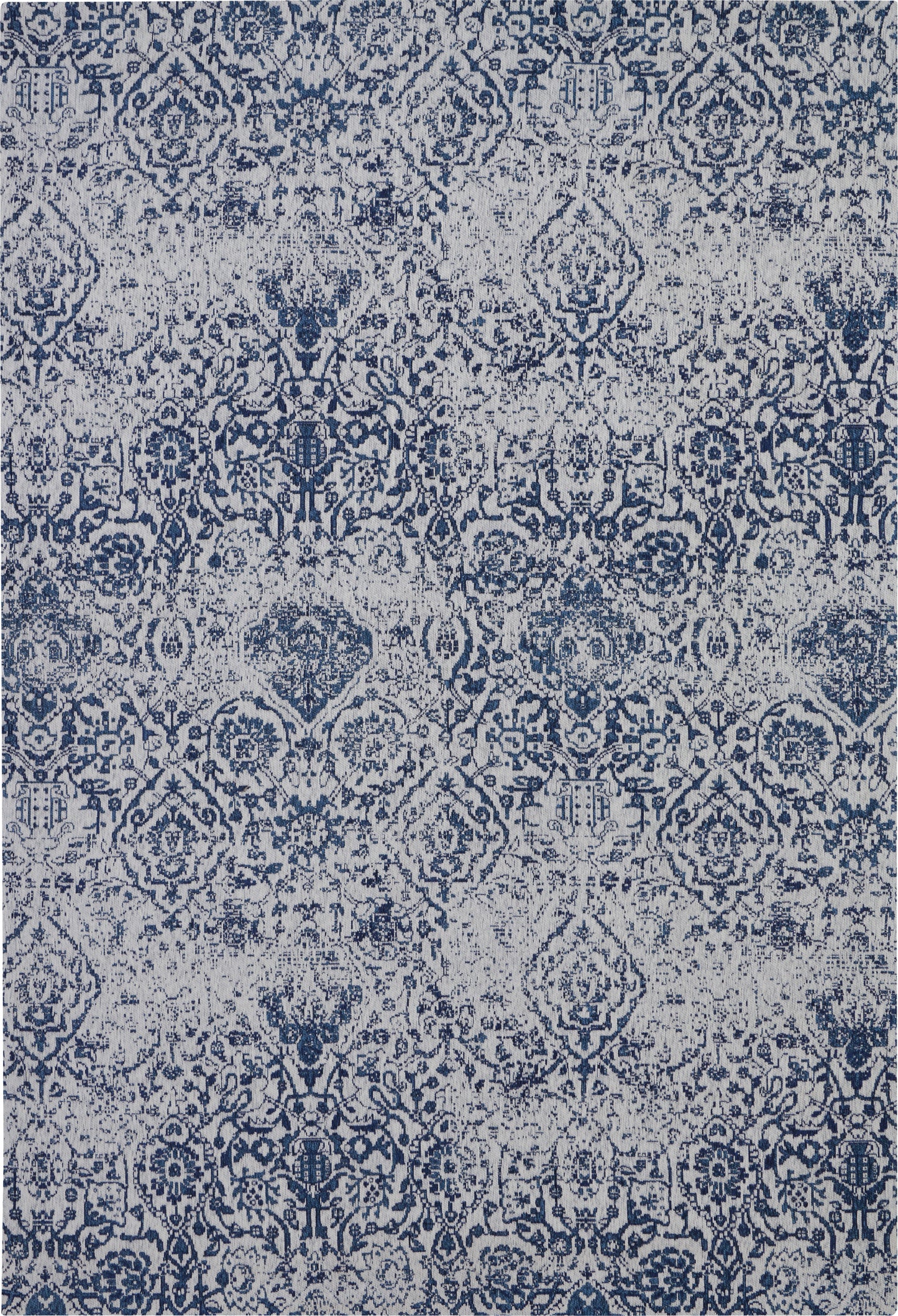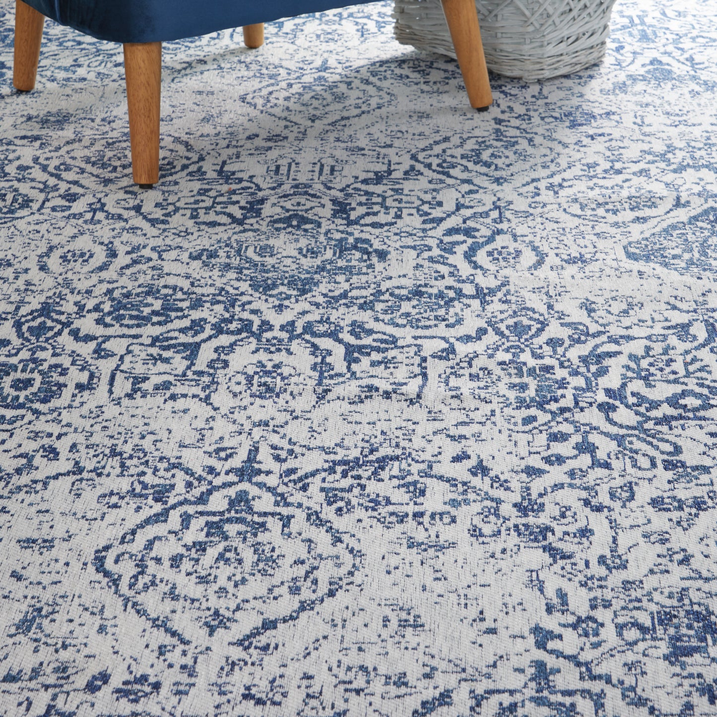The faded effect of a time-worn antique creates mysterious beauty in this Damask area rug, a Nourison exclusive. Delicate floral medallions are joined by flowing vines in a stunning navy-on-ivory palette. Soft as a dream in jacquard-woven chenille.