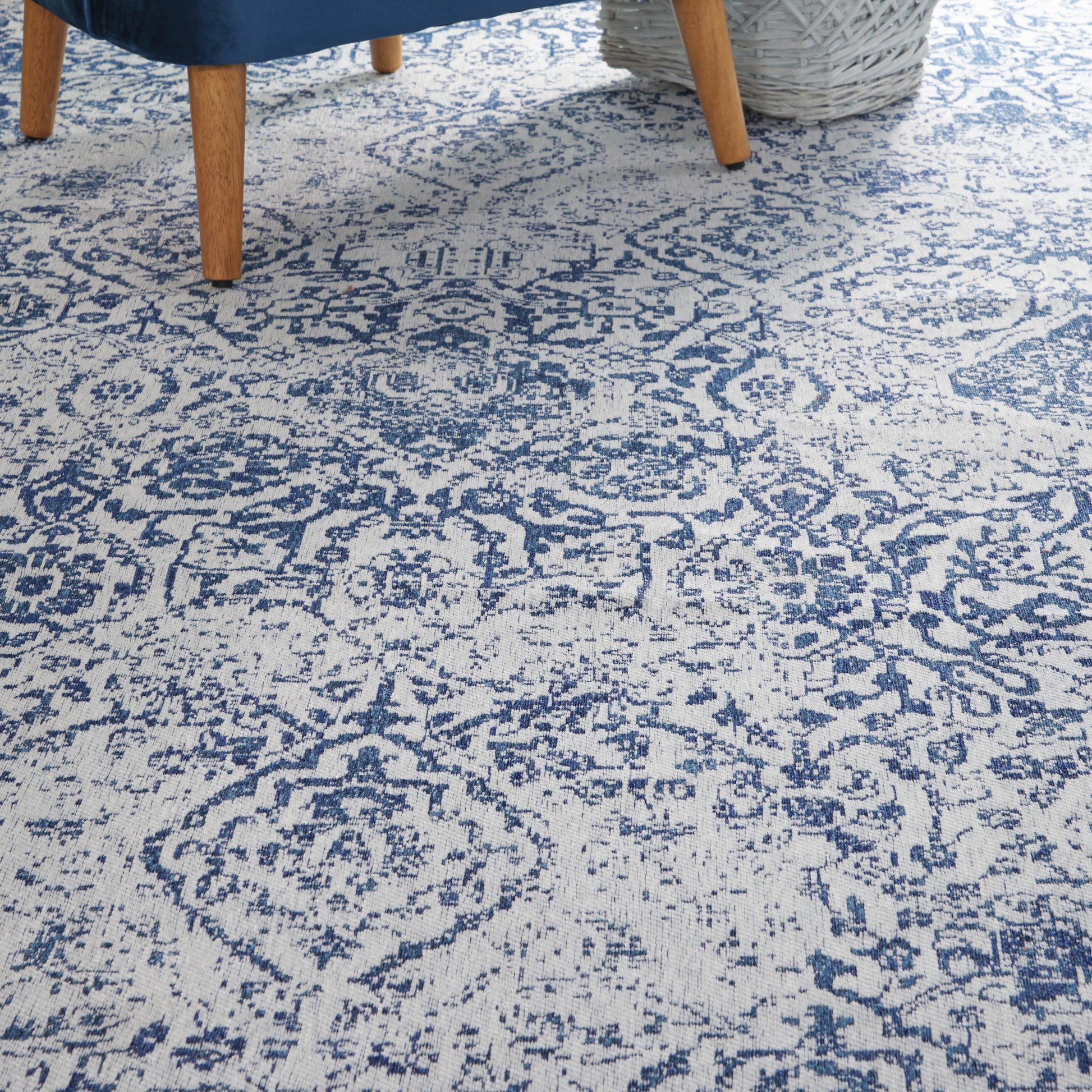 Nourison Damask 6' x 9' Ivory/Navy Vintage Indoor Rug