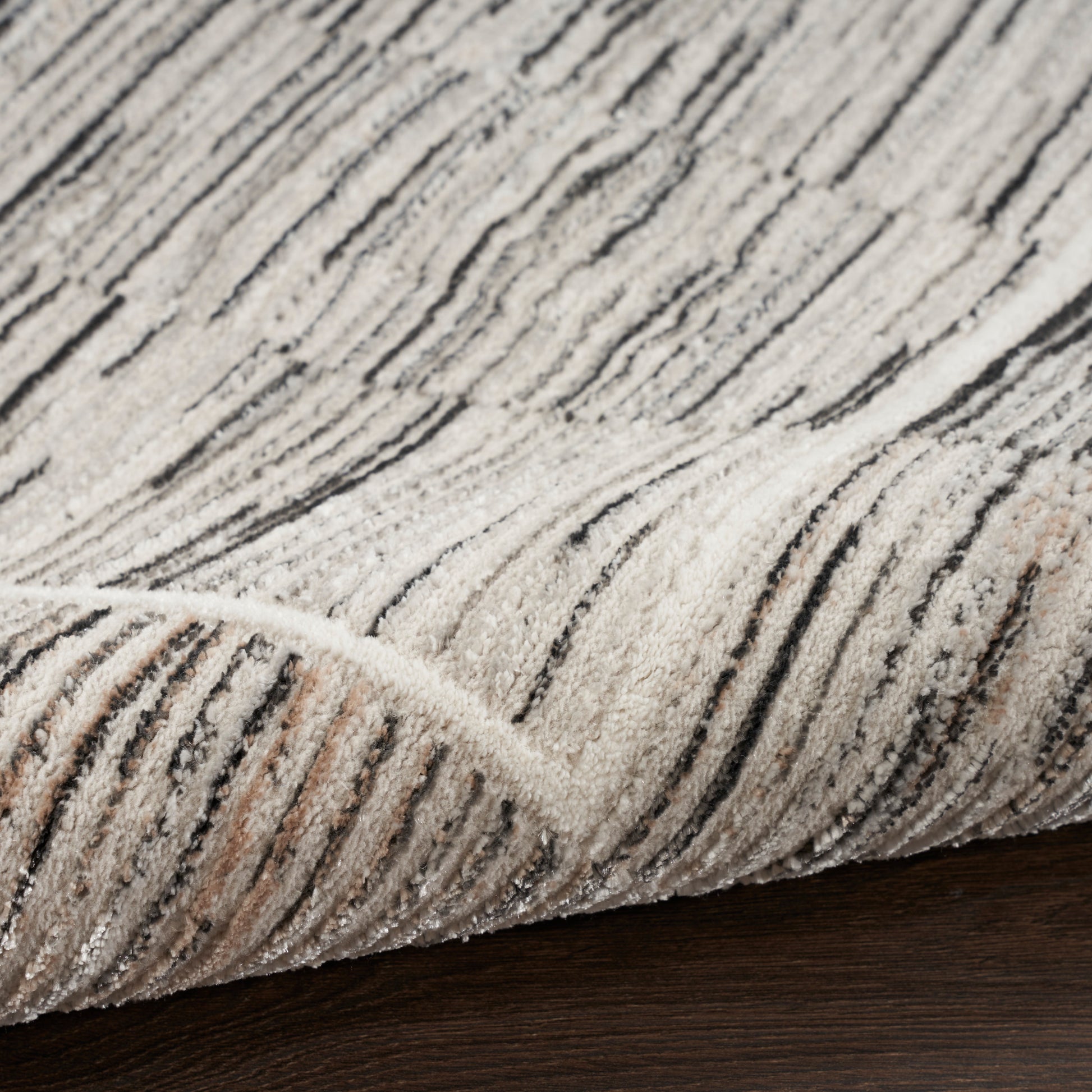 Bring chic, understated style to your home with this modern rug from the Desire Collection. Featuring a multi-toned charcoal and grey abstract linear pattern and simple border, the contemporary design beautifully complements your bedroom, dining room, or living room décor. Machine-made from polyester yarns finished with an eye-catching shimmer that shifts in color from black to silver with changes in light.