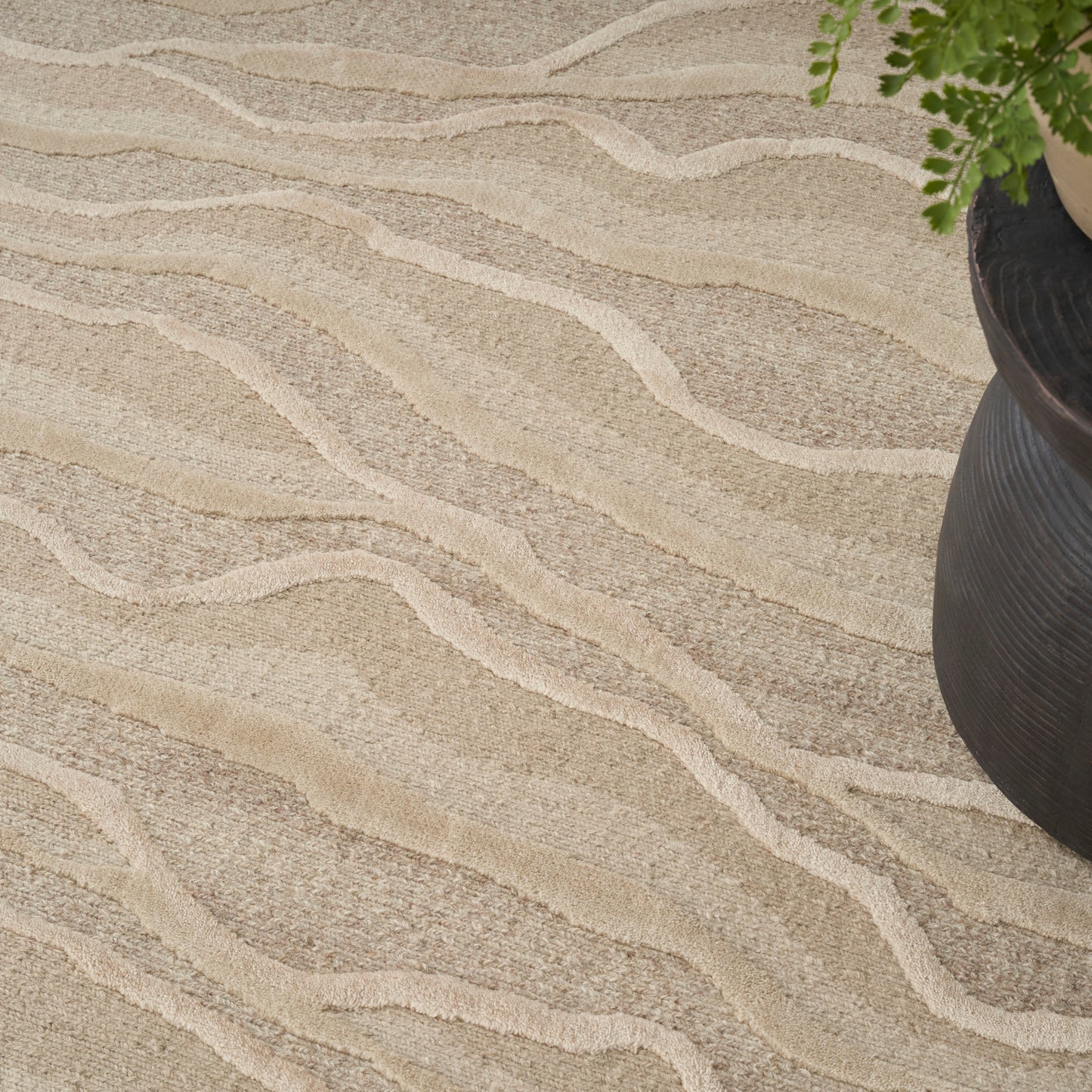 With its gentle curves and textural layers in soft shades of beige and tan, this abstract rug from the Divine Collection is an exquisite work of art designed to inspire imagination. Hand-knotted from a comforting blend of New Zealand wool and silk-like Luxcelle™ yarns that offer unparalleled luxury and warmth.