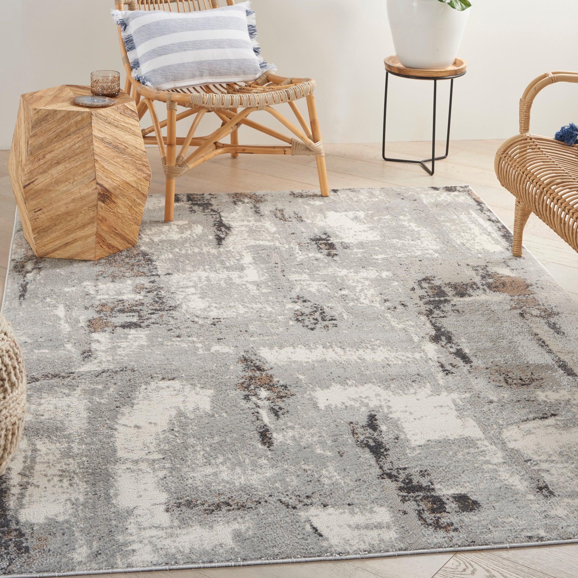 Nourison Elation 4' x 6' Grey Ivory Modern Indoor Rug