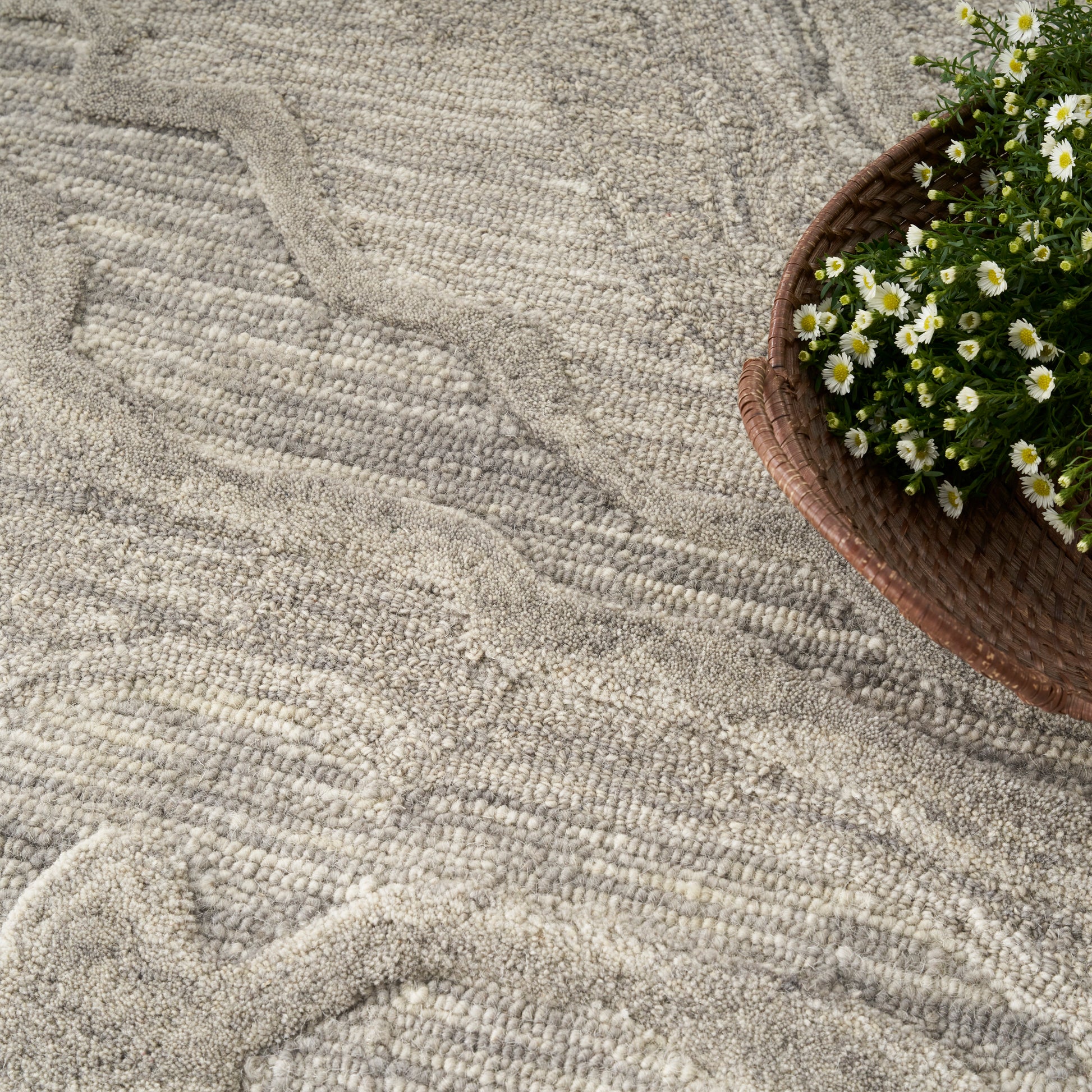 With a delicately layered high-low construction and hand-carved finish, this abstract rug from the Graceful Collection adds a stunning sense of depth to your space. The nature-inspired design ebbs and flows like a changing landscape, complemented by a soothing grey color palette that brings movement with a relaxed edge. Handmade from 100% wool for enhanced comfort.