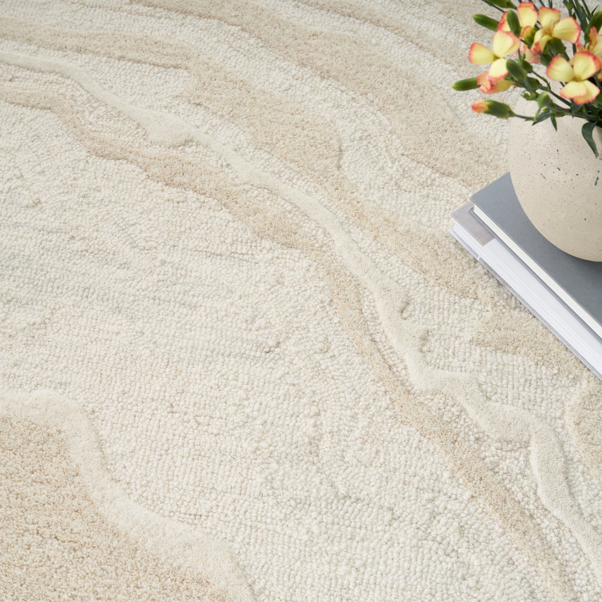 With a delicately layered high-low construction and hand-carved finish, this abstract rug from the Graceful Collection adds a stunning sense of depth to your space. The nature-inspired design ebbs and flows like a changing landscape, complemented by a soothing ivory color palette that brings movement with a relaxed edge. Handmade from 100% wool for enhanced comfort.