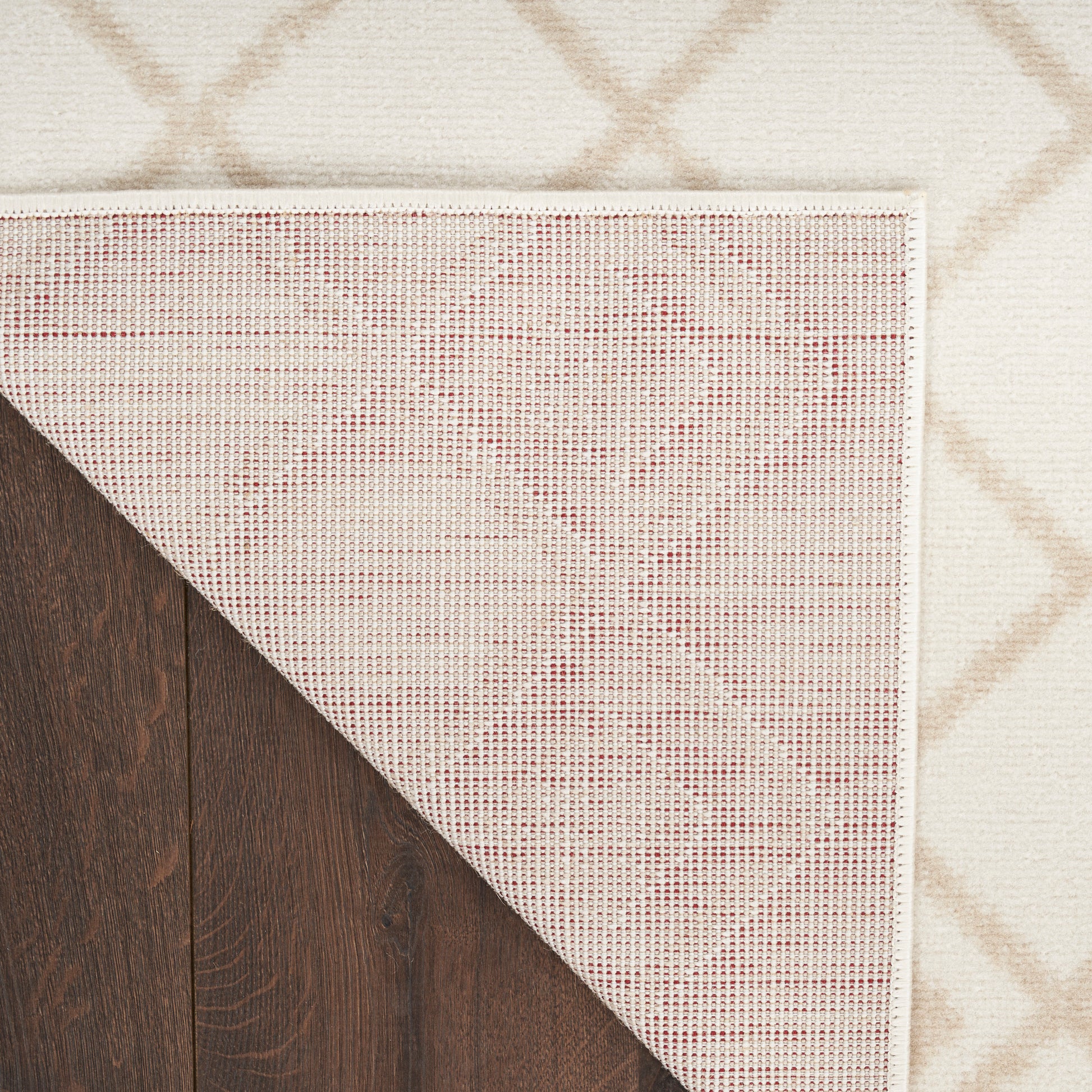 The Moroccan diamond bead pattern of this Grafix area rug creates a dimensional look that draws the eye and pulls a room together. The soft combination of beige and ivory creates a subtle yet stunning focal point for the contemporary home. Made from polypropylene yarns that are easy to clean, durable, and non-shedding – great for high-traffic areas and busy households with pets and young kids.