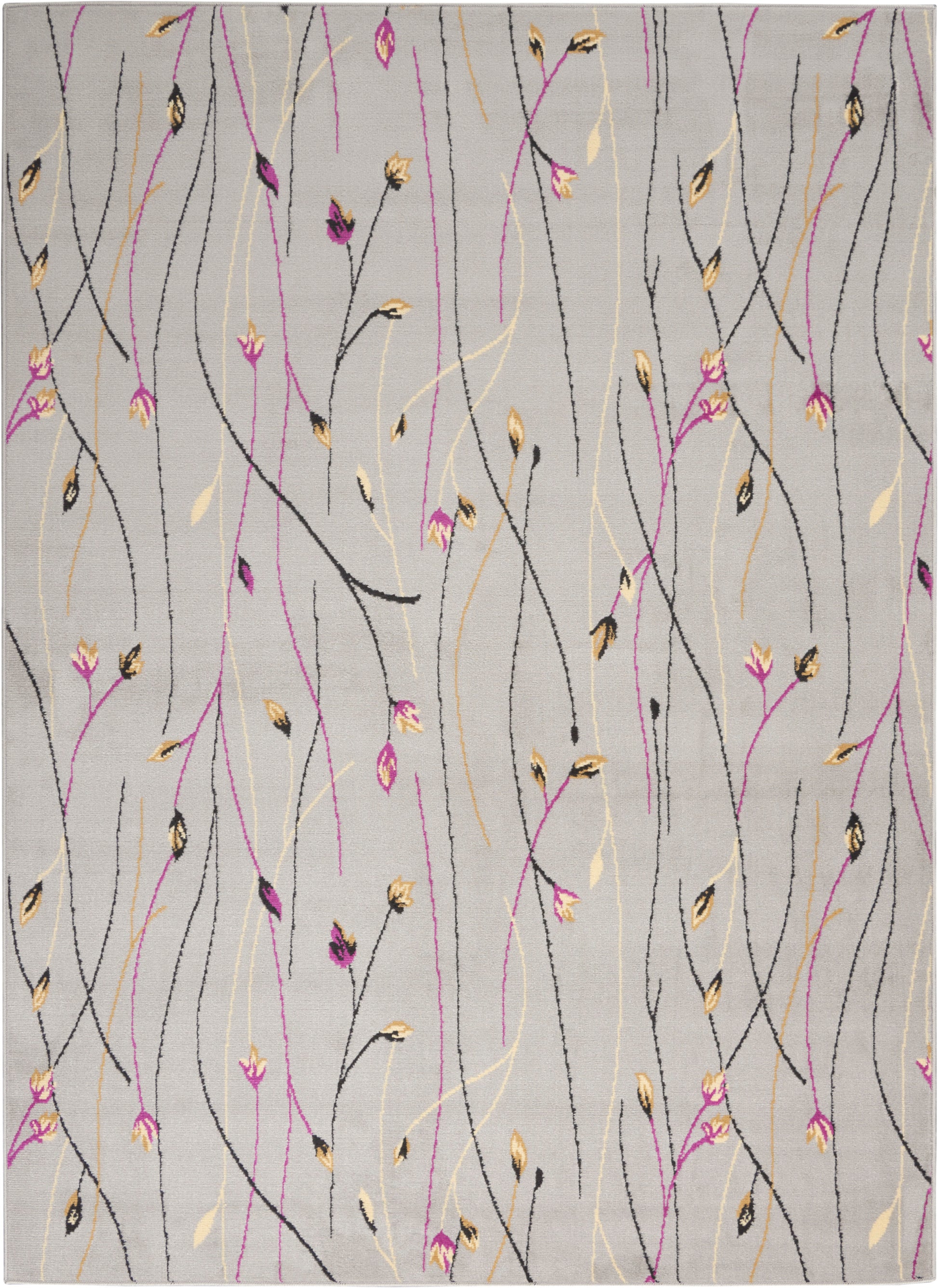 This Grafix area rug from Nourison features a gracefully flowing floral design in profound shades of grey, cream, crimson and blue to impart a stunning and sophisticated simplicity to any room where it resides.
