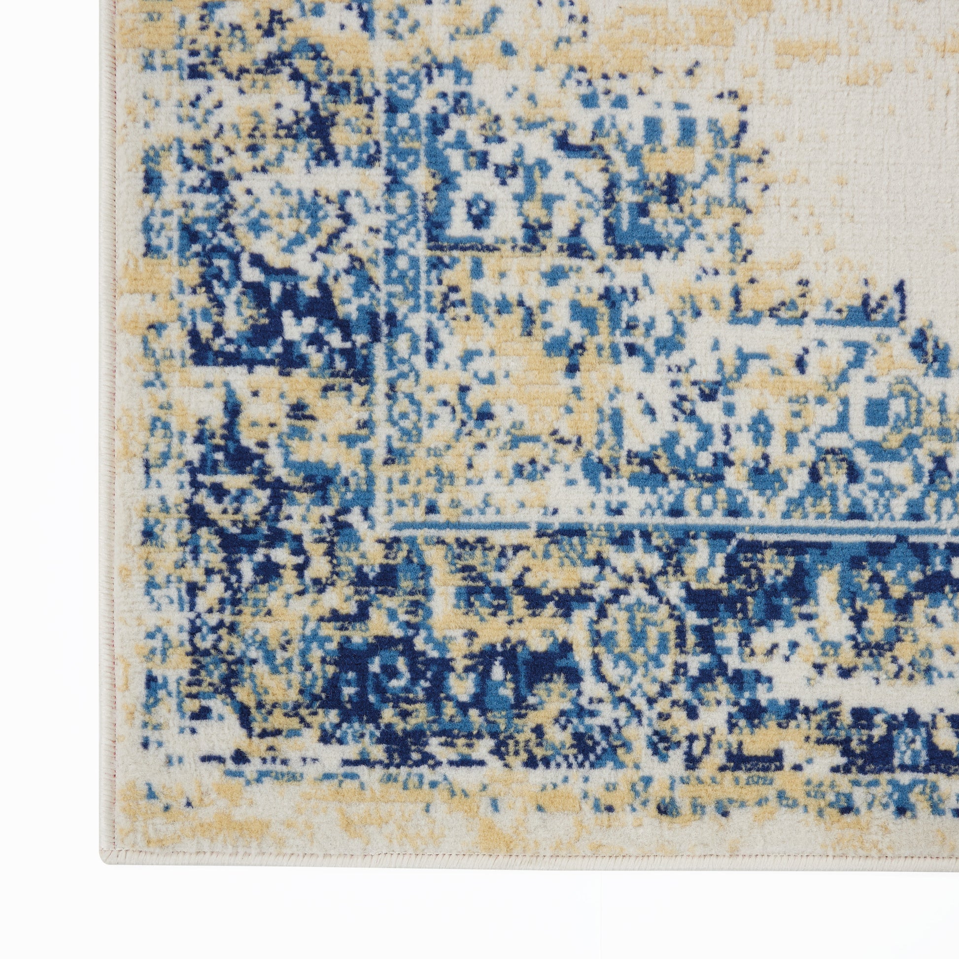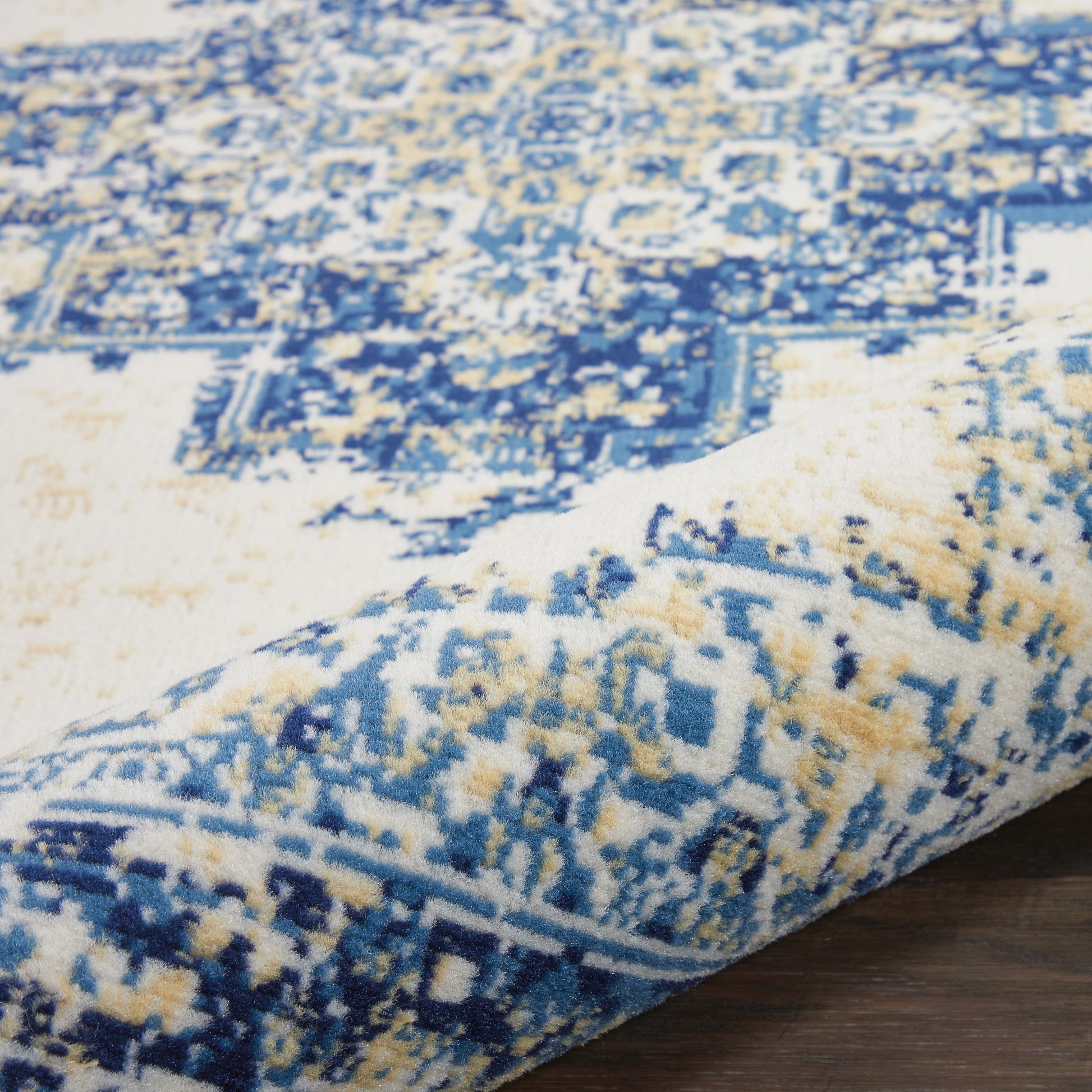 In intriguingly distressed shades of navy blue and white, this Grafix area rug from Nourison will elevate the elegance quotient of any room. Each rug is brilliantly bordered in traditional Persian rug style, and masterfully power loomed for a lavish feel, long wear, and low maintenance.