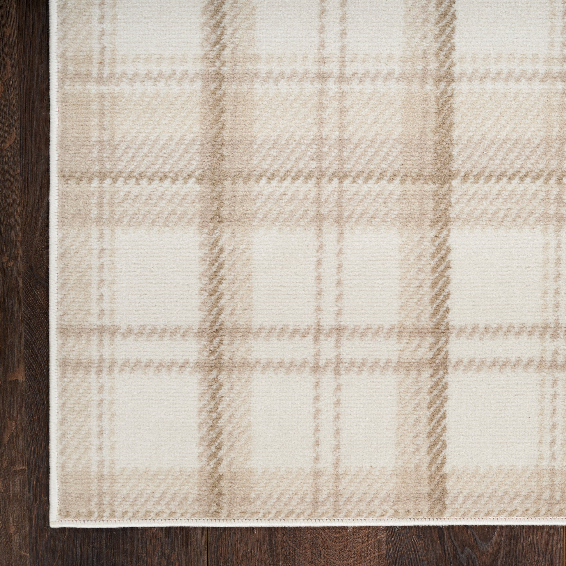 Cozy and casual, this ivory and beige plaid rug from the Grafix Collection adds a layer of relaxed style to your home. The classic linear pattern is equally at home in rustic, farmhouse, and contemporary spaces. Machine-made from durable polypropylene yarns for lasting style and stress-free maintenance – ideal for placement in your living room, bedroom, office, entryway, or kitchen.