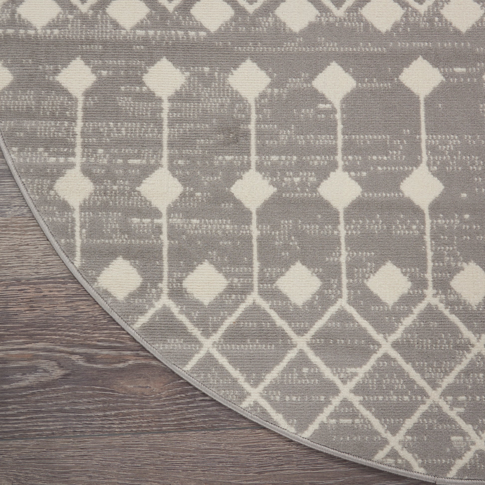 The Moroccan diamond bead pattern of this Grafix area rug creates a dimensional op-art look that draws the eye and pulls a room together. The soft combination of grey and ivory creates a subtle yet stunning focal point for the contemporary home.