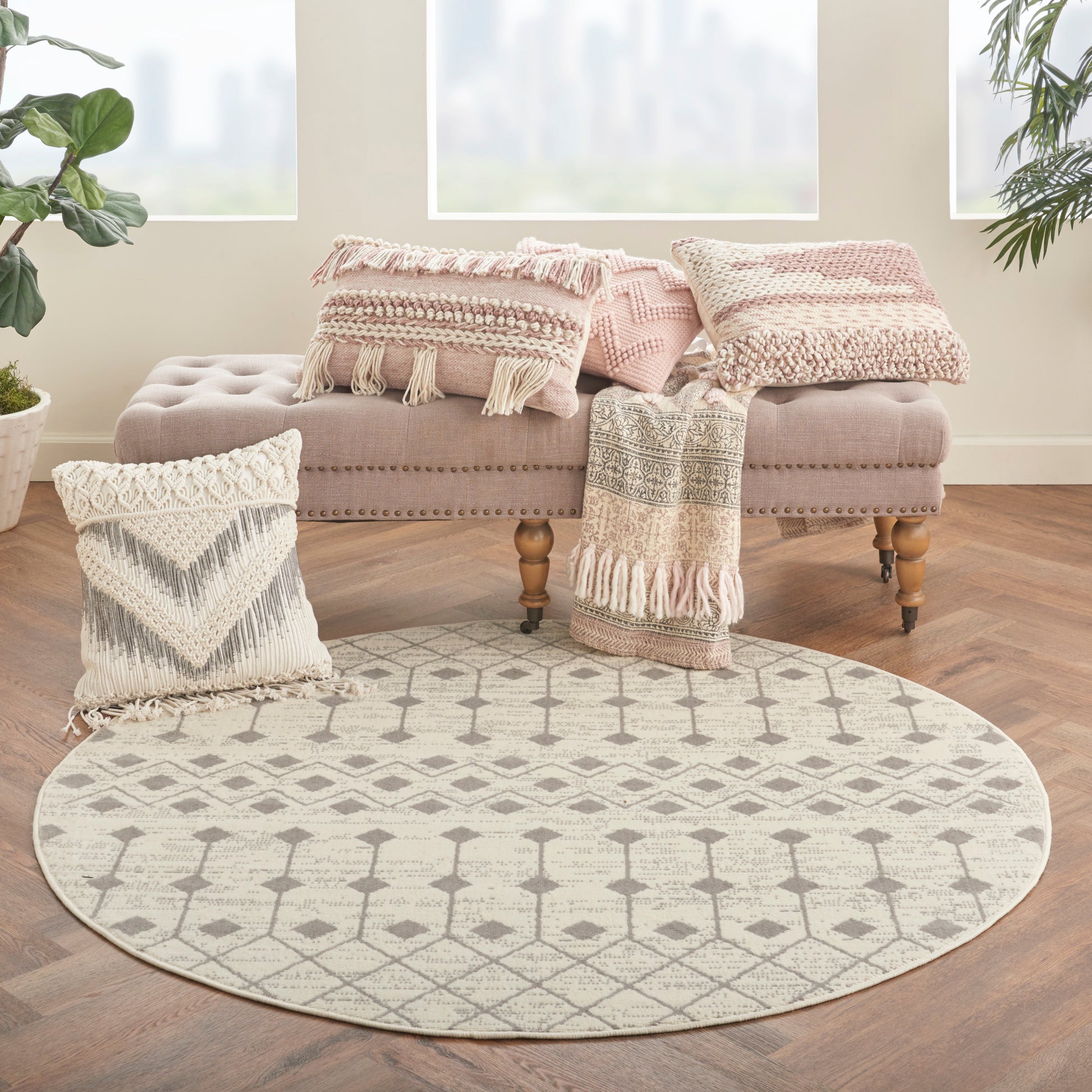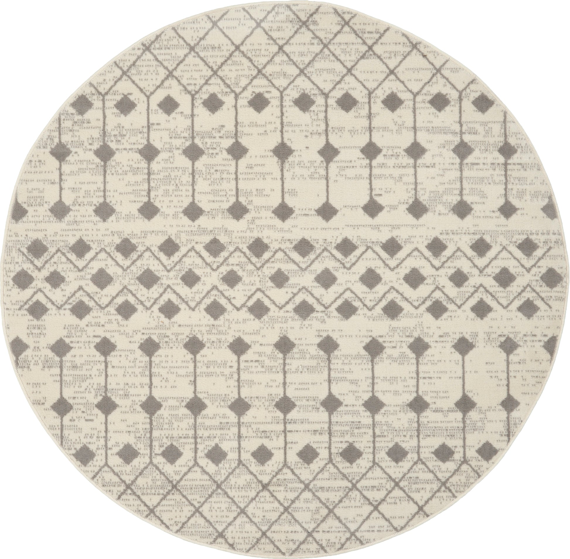 Nourison Grafix 5'3" x Round Ivory/Grey Bohemian Indoor Rug