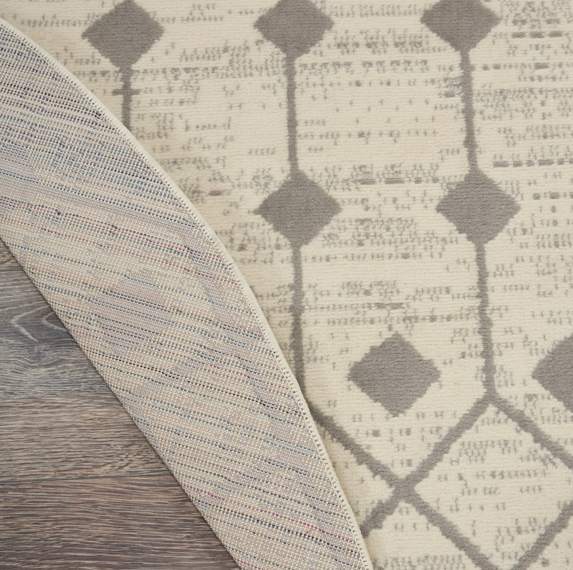 The Moroccan diamond bead pattern of this Grafix area rug creates a dimensional op-art look that draws the eye and pulls a room together. The soft combination of ivory and grey creates a subtle yet stunning focal point for the contemporary home.