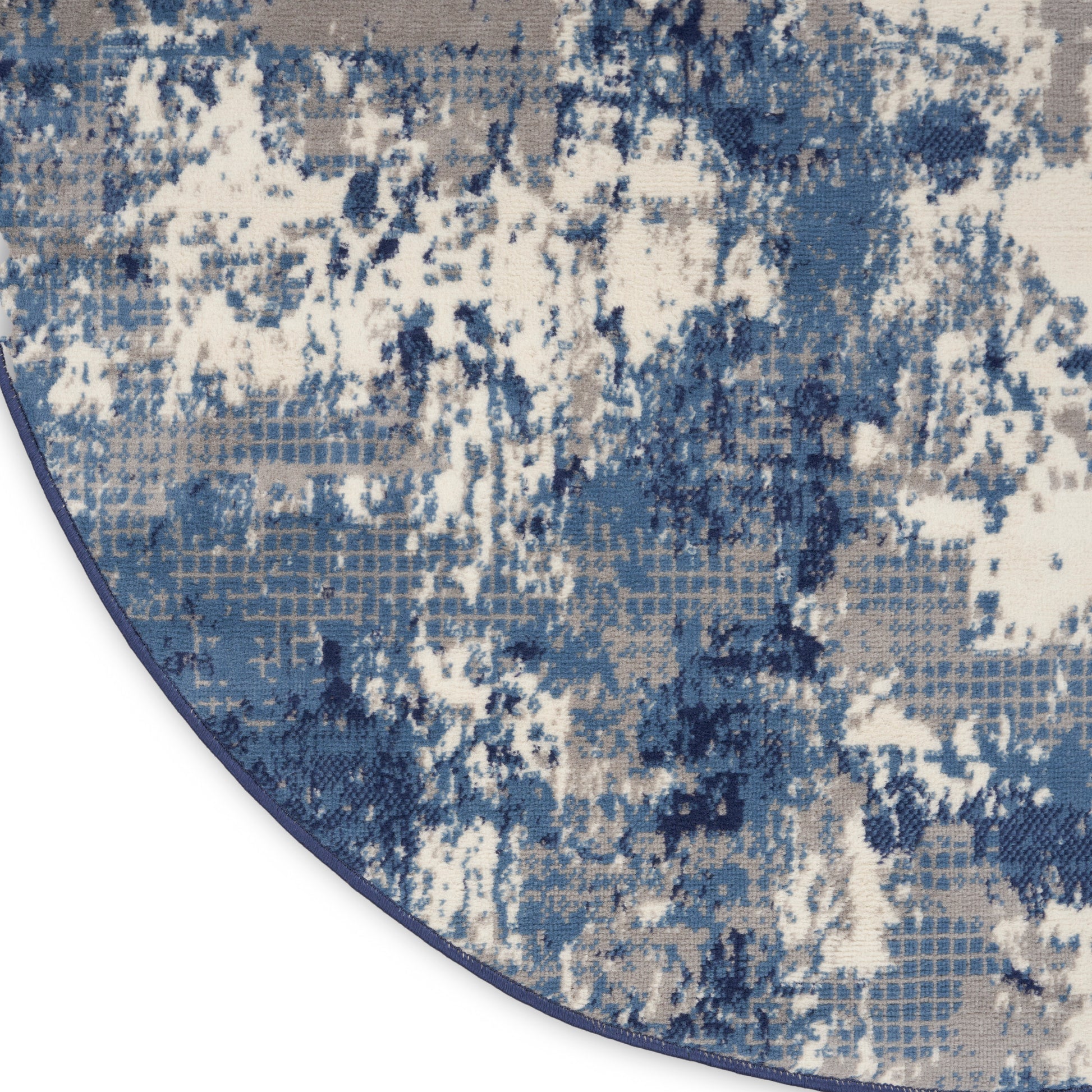 Nourison Grafix 5'3" x Round Navy Blue Modern Indoor Rug