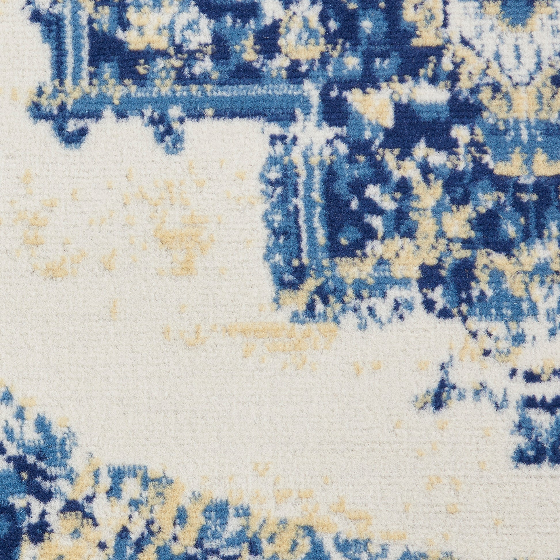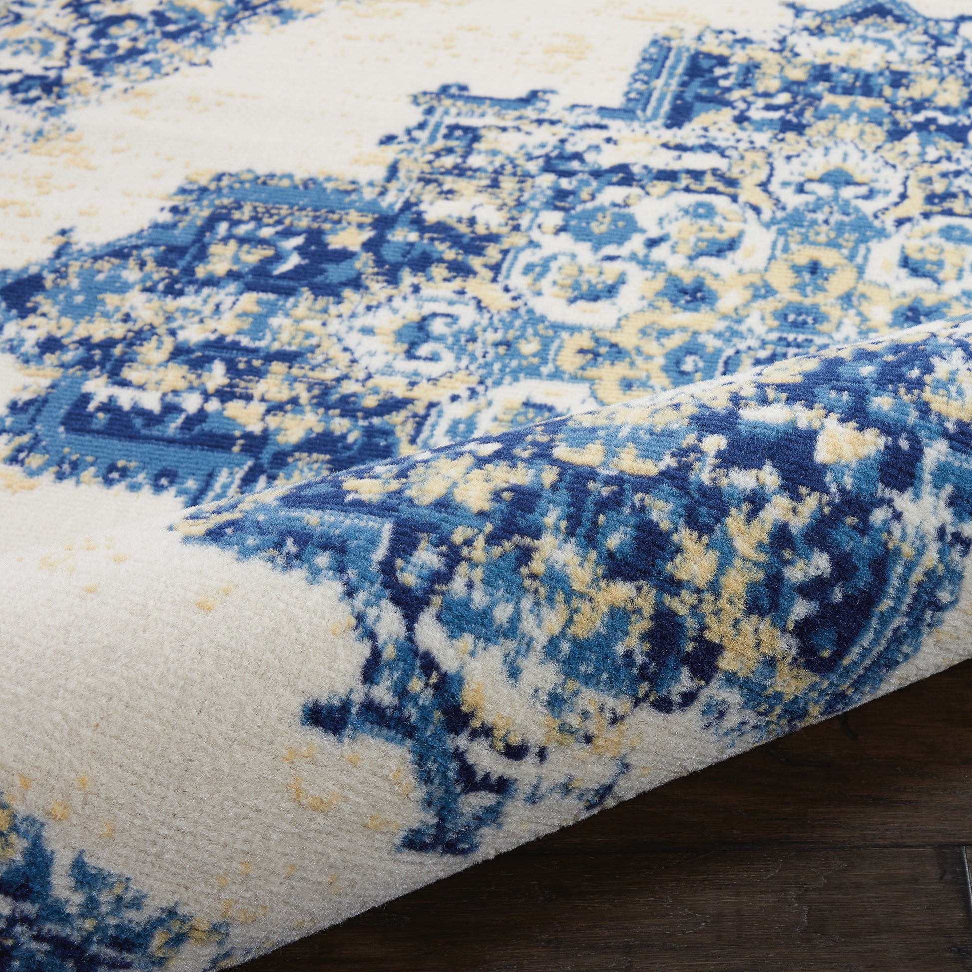 In intriguingly distressed shades of navy blue and white, this Grafix area rug from Nourison will elevate the elegance quotient of any room. Each rug is brilliantly bordered in traditional Persian rug style, and masterfully power loomed for a lavish feel, long wear, and low maintenance.