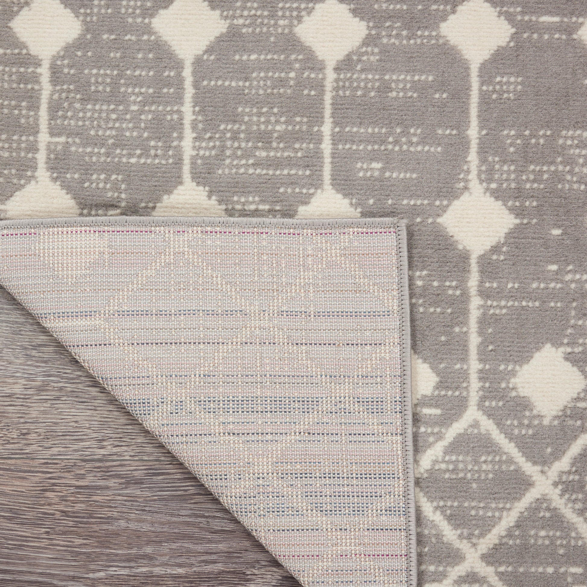The Moroccan diamond bead pattern of this Grafix area rug creates a dimensional op-art look that draws the eye and pulls a room together. The soft combination of grey and ivory creates a subtle yet stunning focal point for the contemporary home.