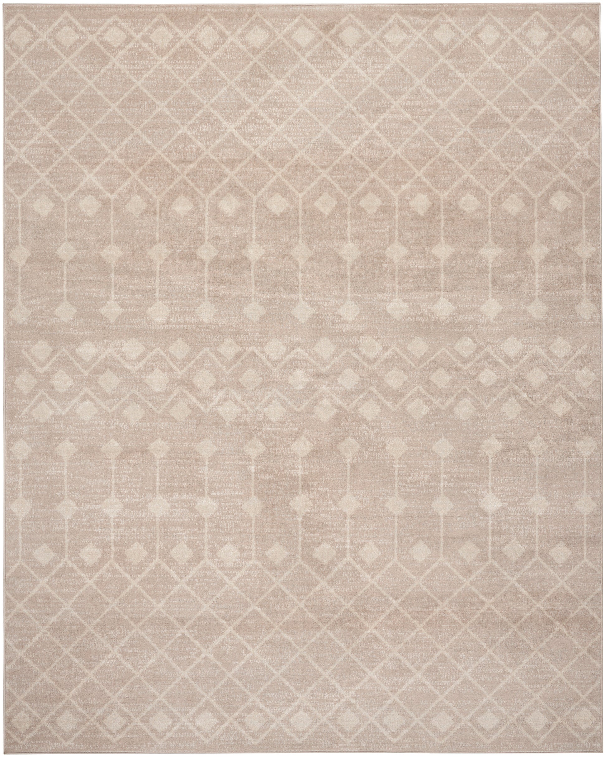 The Moroccan diamond bead pattern of this Grafix area rug creates a dimensional look that draws the eye and pulls a room together. The soft combination of beige and ivory creates a subtle yet stunning focal point for the contemporary home. Made from polypropylene yarns that are easy to clean, durable, and non-shedding – great for high-traffic areas and busy households with pets and young kids.