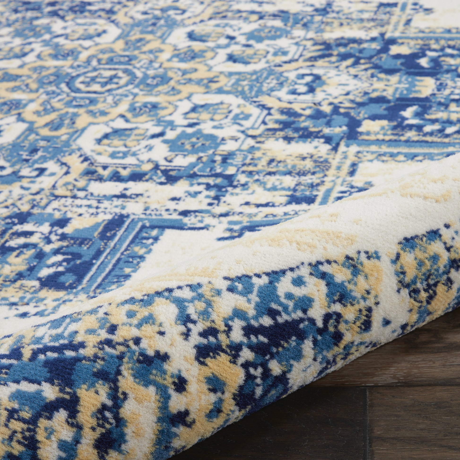 In intriguingly distressed shades of navy blue and white, this Grafix area rug from Nourison will elevate the elegance quotient of any room. Each rug is brilliantly bordered in traditional Persian rug style, and masterfully power loomed for a lavish feel, long wear, and low maintenance.