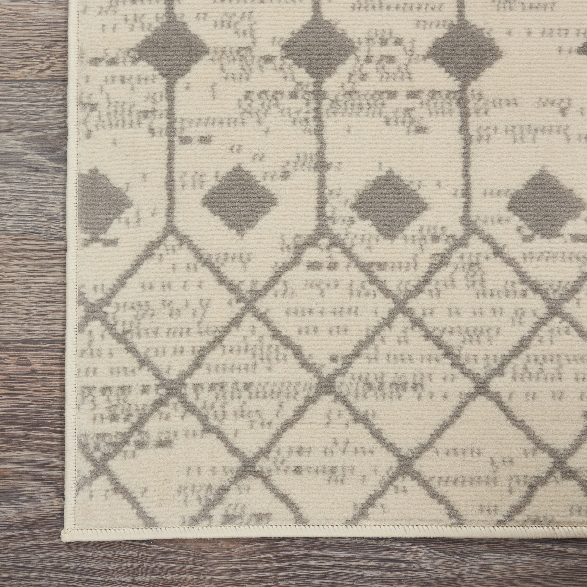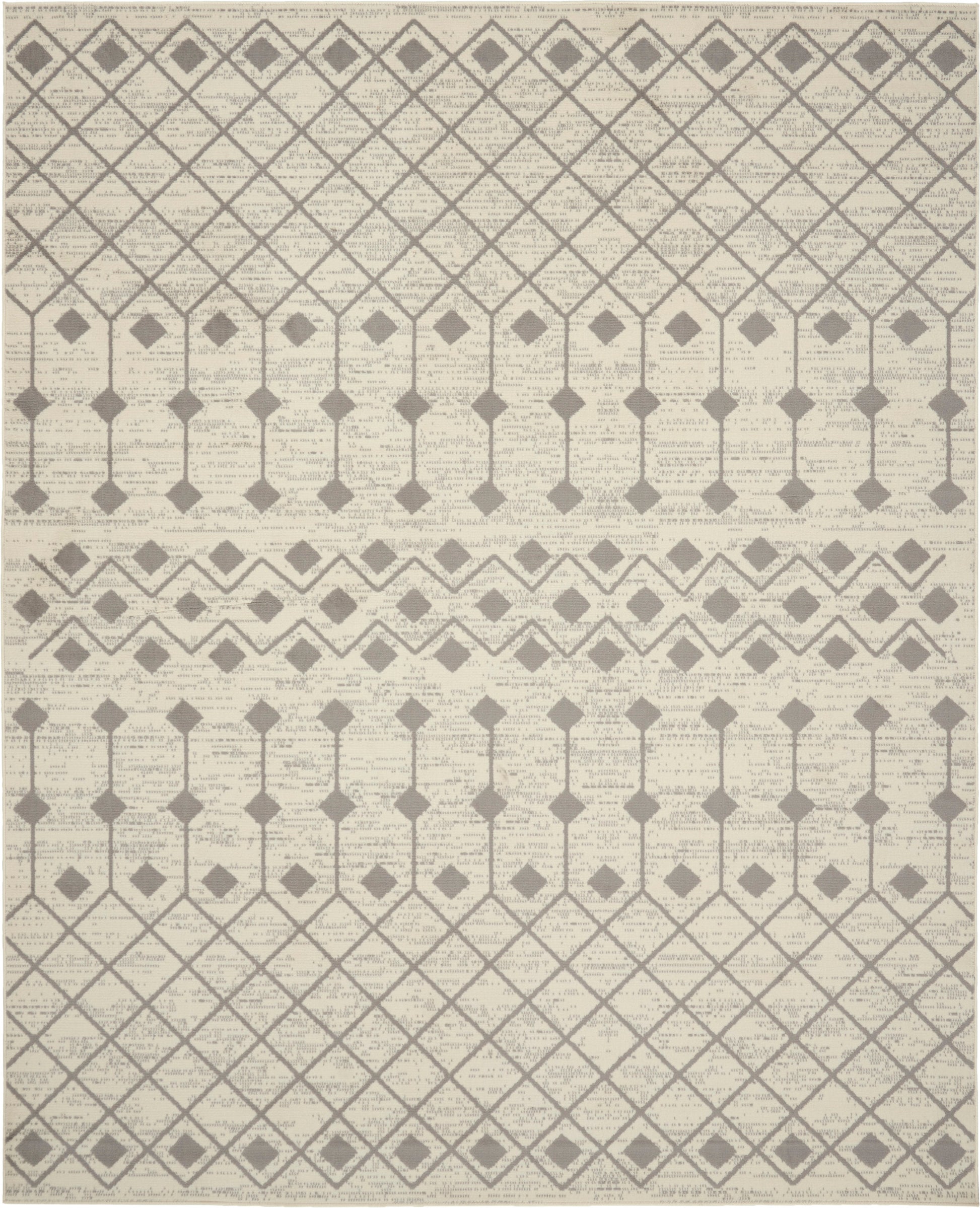 The Moroccan diamond bead pattern of this Grafix area rug creates a dimensional op-art look that draws the eye and pulls a room together. The soft combination of ivory and grey creates a subtle yet stunning focal point for the contemporary home.
