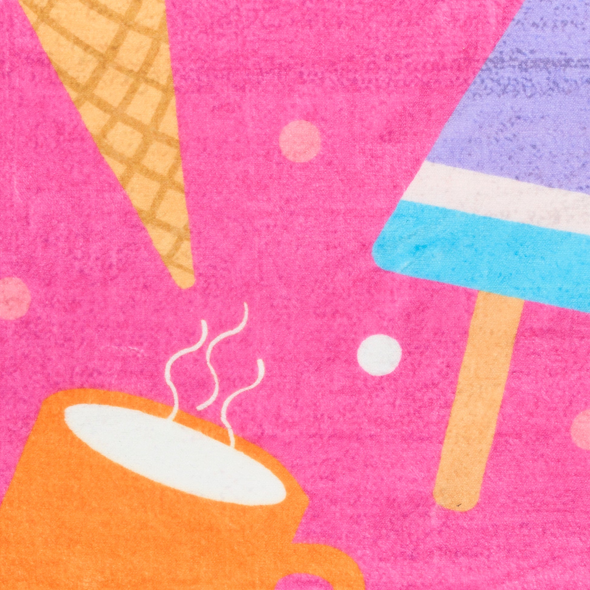 Bring a sweet and joyful vibe to your child’s room with this kids’ rug from the Imagination collection. The printed surface creates a colorful and whimsical space, thanks to the vibrant pink background sprinkled with fun images of cupcakes, donuts, and ice cream cones. This rug is machine washable with a soft polyester construction and non-skid backing, making it both cute and functional.