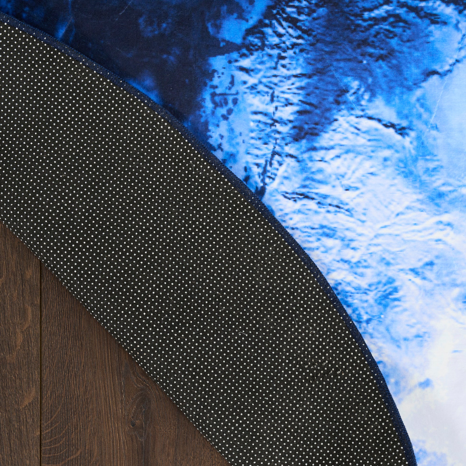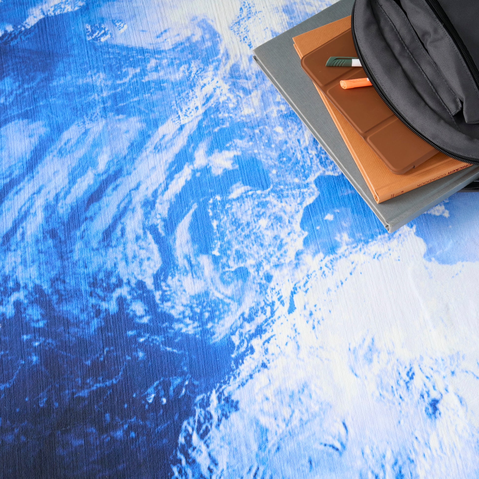 Bring the wonders of the planet into your child’s playroom, bedroom, or classroom with this kids’ rug from the Imagination collection. The detailed, printed surface showcases the beauty of Earth in a cool blue pattern. Perfect for young explorers, this washable rug offers a soft play surface with a non-skid backing for added safety.