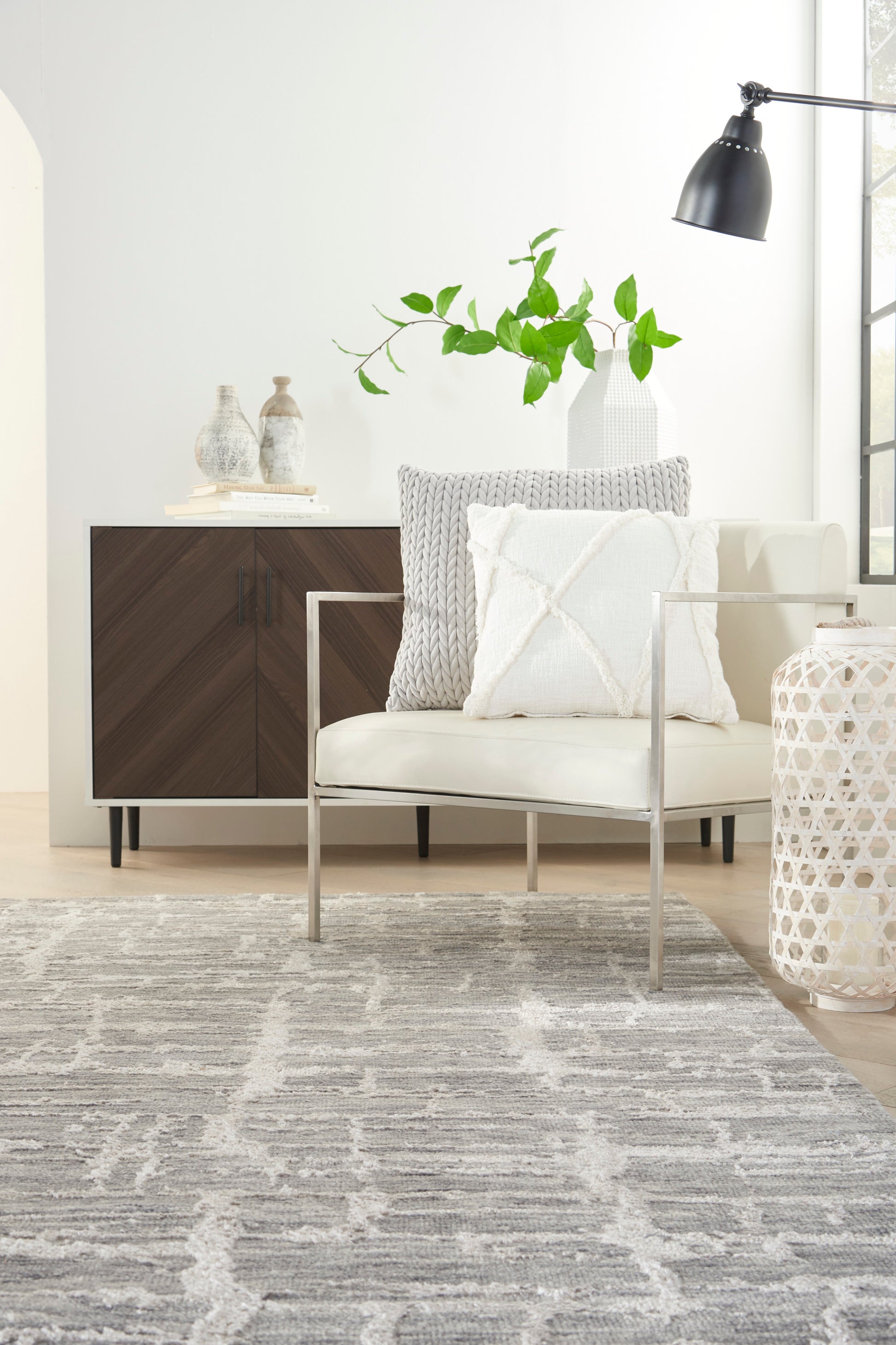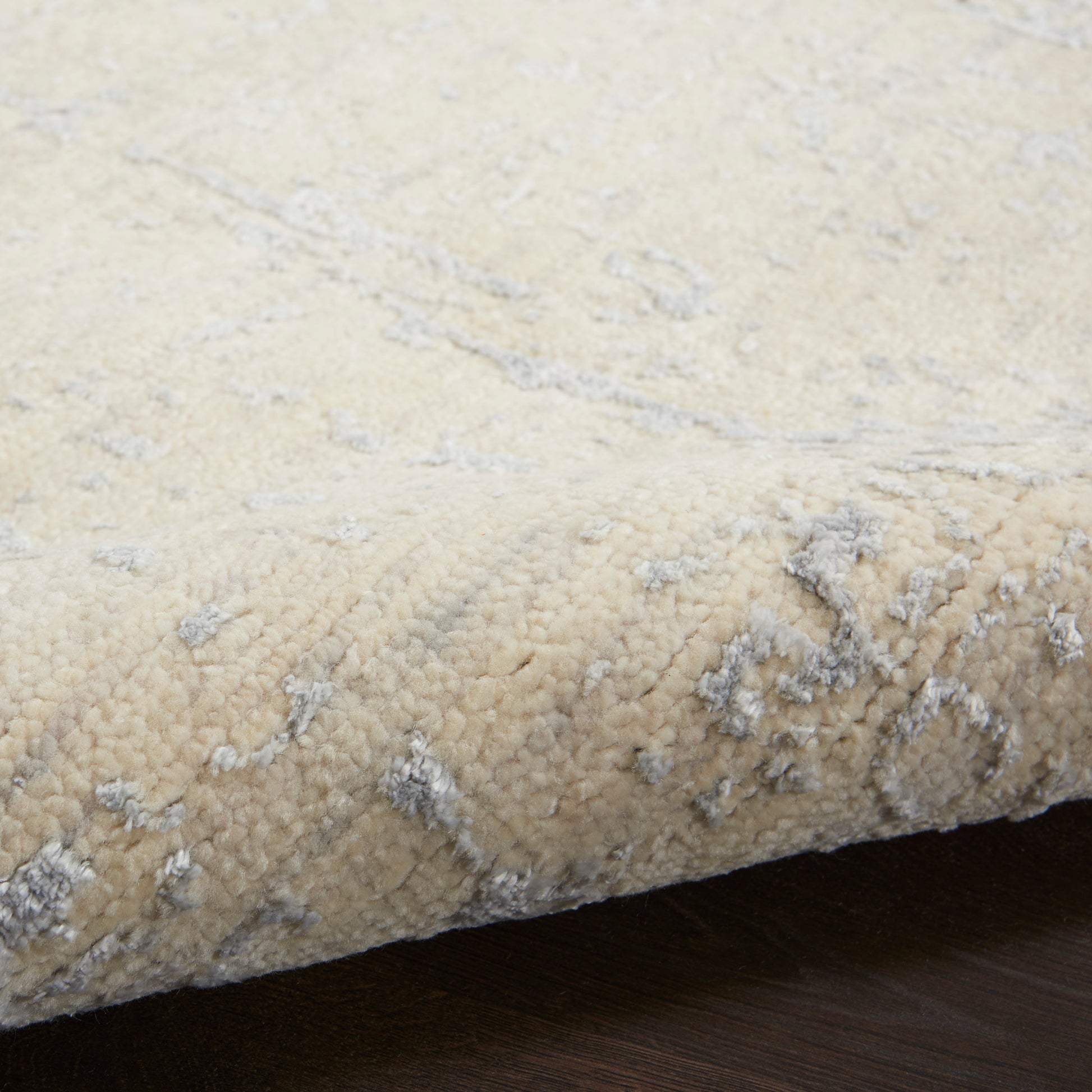 Complete your contemporary or eclectic look with the modern sophistication of this Luna area rug. Hand-knotted in a luminous ivory-silver color combination, the all-over design presents a drybrush watercolor effect. Subtle variations in color and size make each rug as unique as the artisan who crafted it. Enjoy its textured low pile with easy-care qualities in any favorite room.