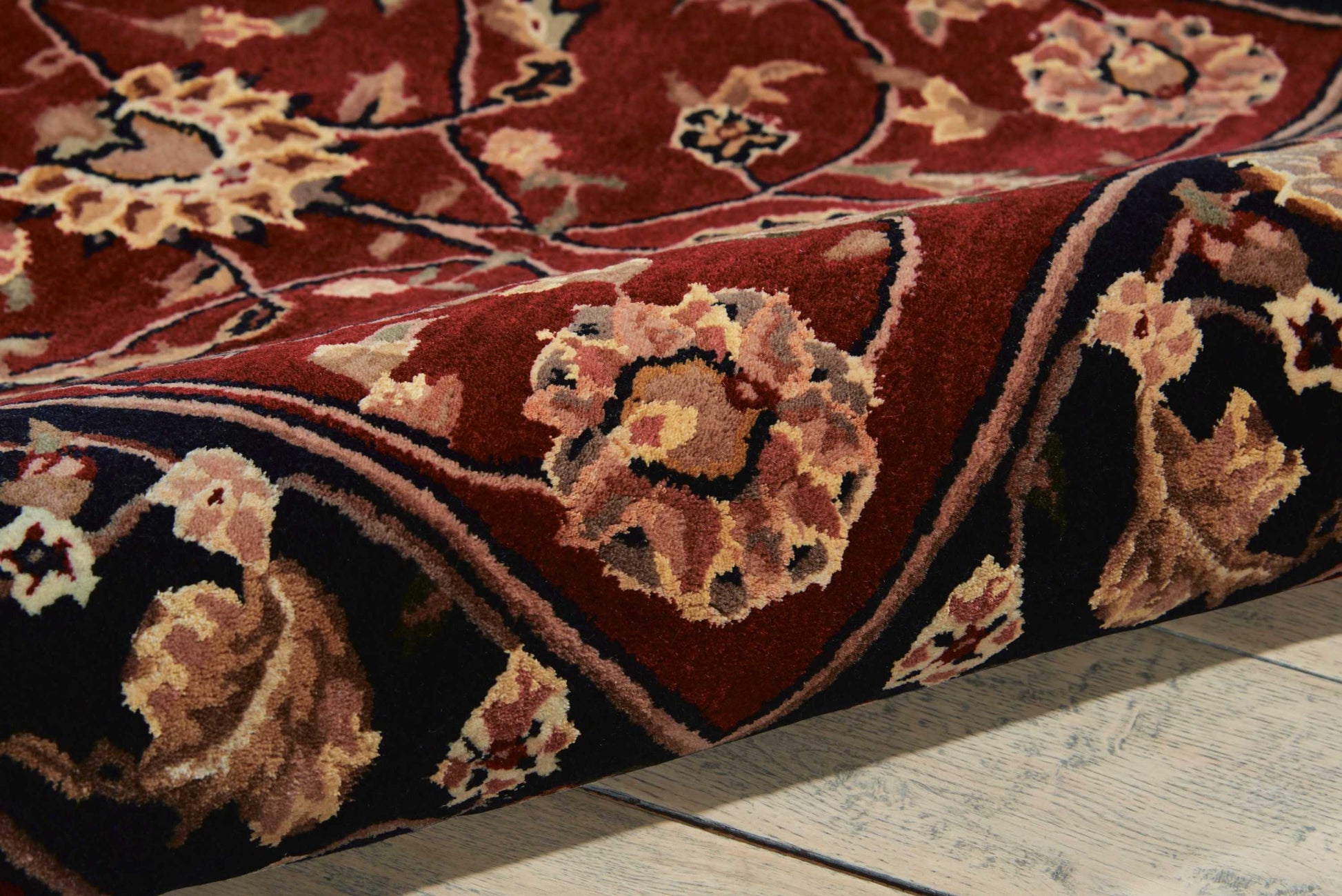 As rich in color as a page from a Persian manuscript, this premium rug fairly dances with floral motifs. The wine-deep burgundy contrasts gorgeously with the elegant border. This garden of Paradise will add life to any room.