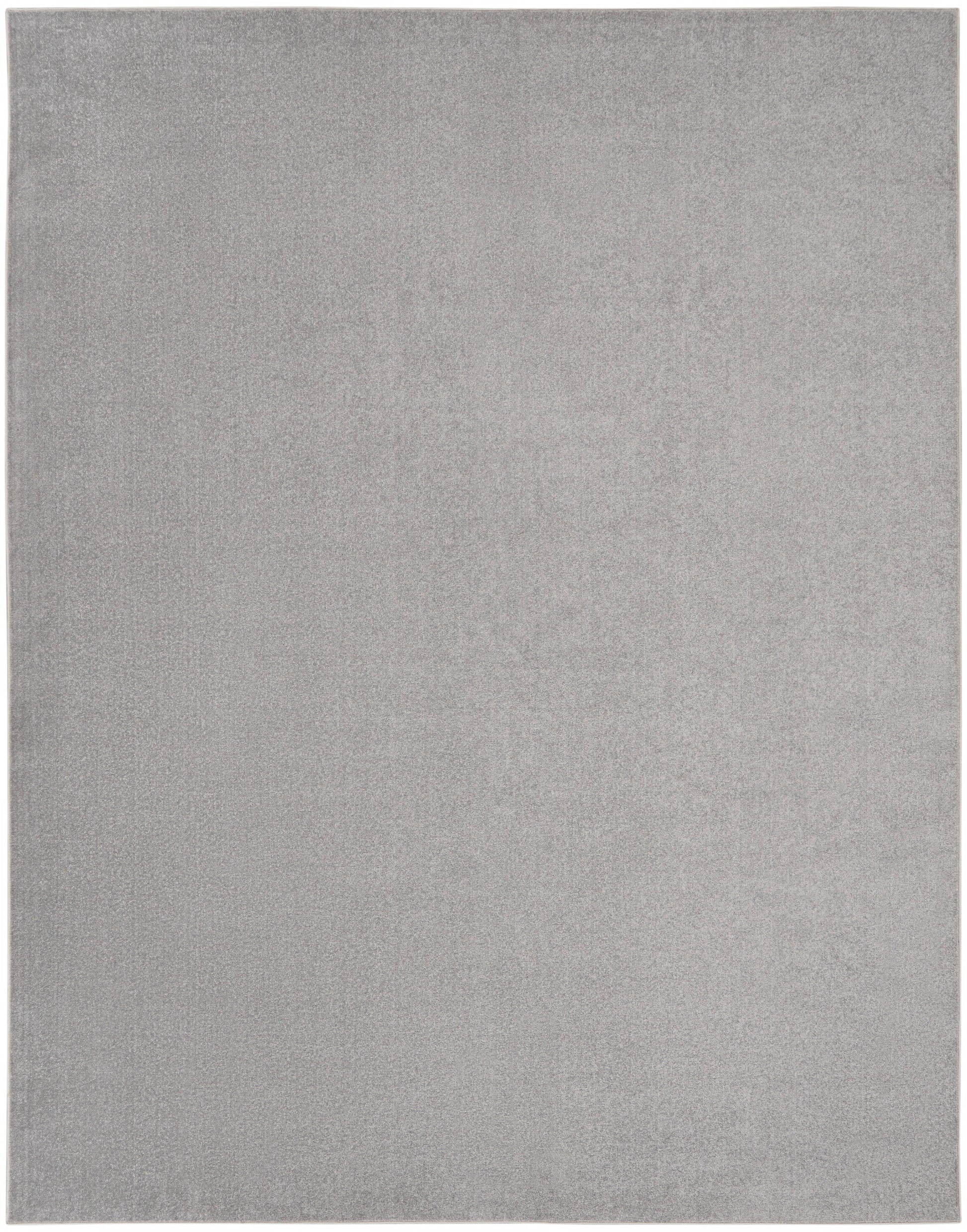 Designed for busy, active lifestyles, this silver-grey outdoor rug from the Nourison Essentials Collection is the ideal pairing of style and practicality. The simple, solid pattern is enhanced with subtle tonal variations and a surprisingly soft texture that’s equally suitable for any room inside the home. Place in any room as a standalone foundation for your décor or use as part of a layered rug look. Machine-made with a low-profile construction from easy to clean polypropylene yarns, this modern rug easily withstands heavy traffic and does not shed. Hand washable outdoors only: rinse with a hose and air dry.