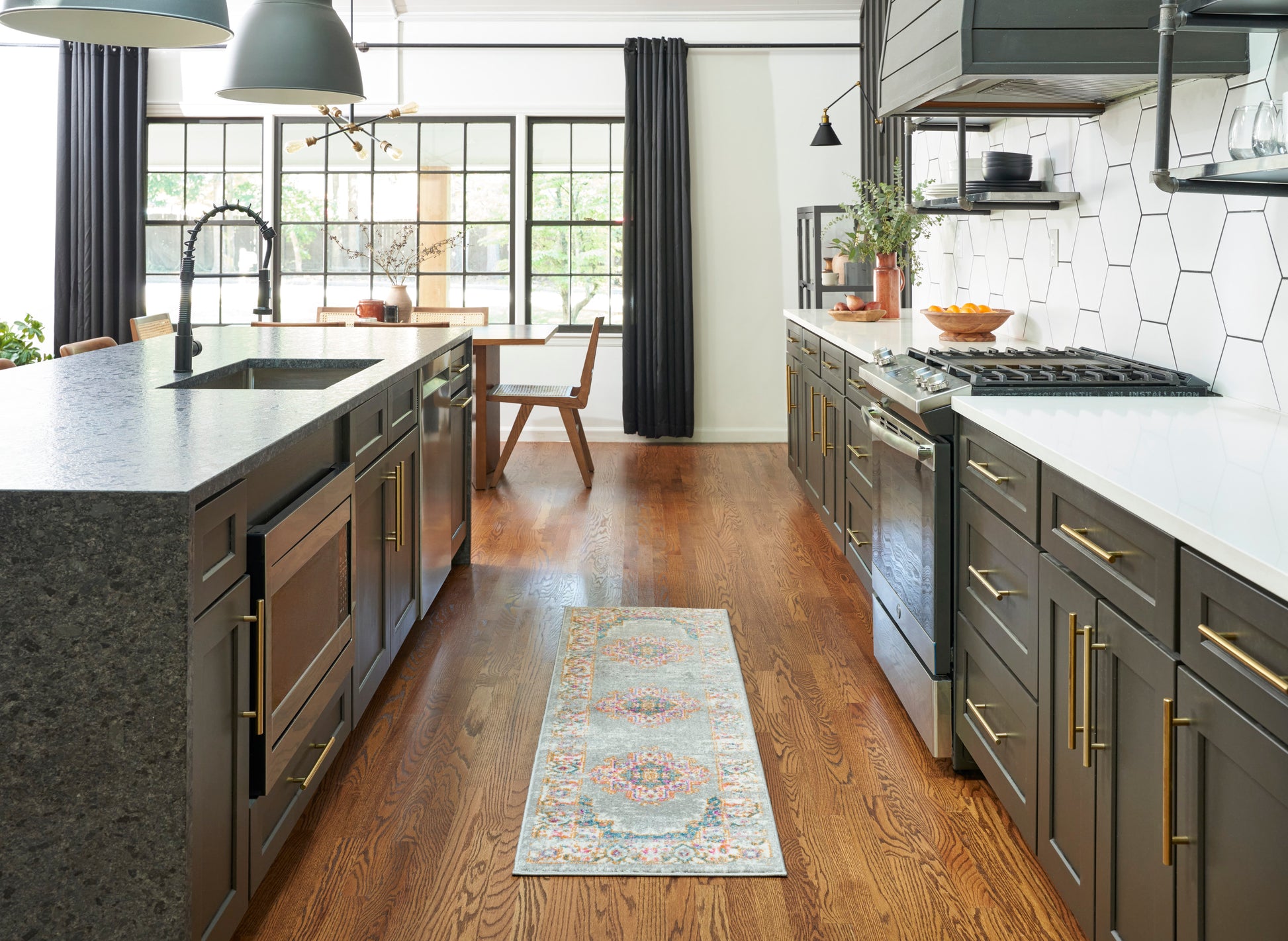 Rug Pad Benefits: Adding a layer of padding helps cushion the rug and lesson pressure, helping to prolong the rug’s life. In addition, the extra padding helps deaden sound in the room.