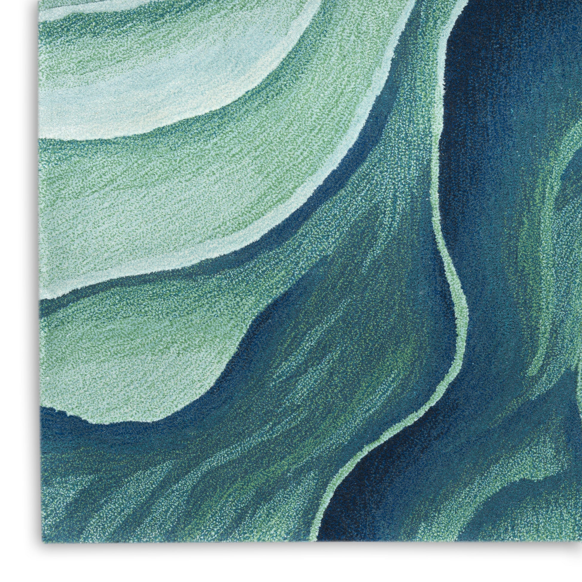Create a captivating focal point for conversation with this abstract rug from the Prismatic Collection. Tight ripples of multi-toned green and silver come together in a mesmerizing pattern, punctuated by hand-carved accents that add a uniquely dimensional look. Handmade from a blend of New Zealand wool and silk-like Luxcelle™ fibers that beautifully capture changes in light.